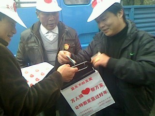 2012年1月8日,天空虽然下着小雨,但在石湖荡镇的石湖新路上却在热闹地举行着“蓝天下的挚爱”——红十字慈善募捐活动。