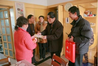 作为红十字会的一项品牌活动——“千万人帮万家”红十字会迎春募捐帮困活动已开展了10年。元月14日下午,区红十字会常务副会长俞治平一行在岳阳街道副主任、街道红十字会会长吴伟的陪同下,走访了街道辖区内两户身患癌症的贫困家庭,送上了过冬的保暖内衣和慰问金。俞治平详细询问了他们现在的病情,鼓励他们战胜疾病,勇敢面对生活,并希望这份爱心能为他们解决一些实际的困难。走访的困难家庭也纷纷表示感谢党、政府和红十字会对他们的关心和帮助,他们一定会极积治疗、自强不息、努力坚持锻炼和康复,早日回报社会。