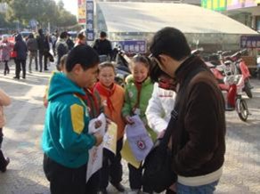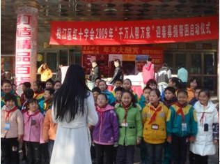 12月5日,松江区红十字会在松江商城门口举行了2009年“千万人帮万家”迎春募捐帮困启动仪式。来自红十字达标学校岳阳小学的45名红十字青少年志愿者纷纷上街进行了街头劝募活动。
