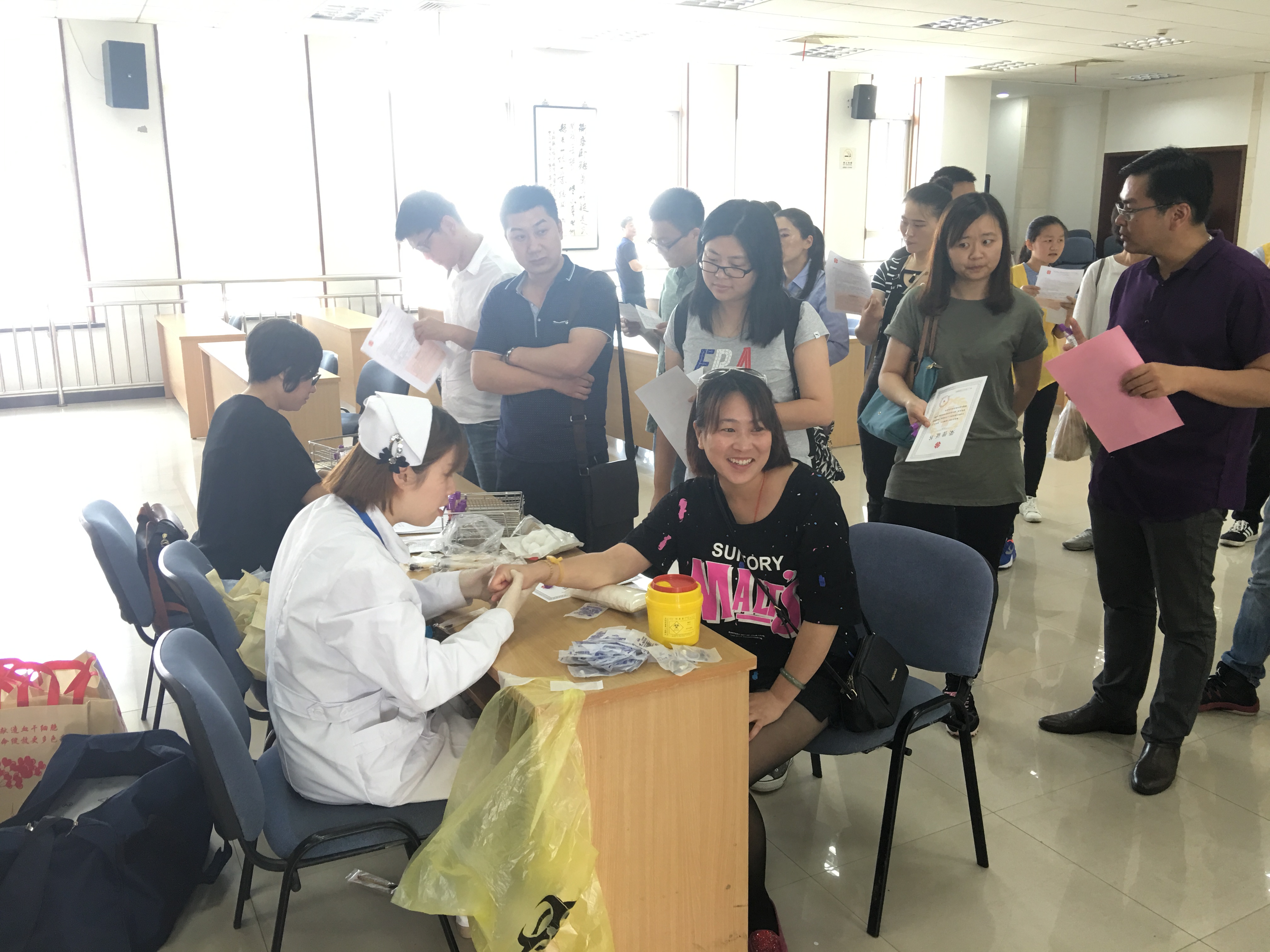 为纪念第70个世界红十字日,进一步传播和弘扬“人道、博爱、奉献”红十字精神,2017年5月17日和5月26日下午,松江区红十字会分别举办了造血干细胞捐献口腔黏膜和血检采集入库活动。活动两天,共有184名来自全区各机关和企事业单位的爱心青年加入了中国造血干细胞资料库上海市分库。