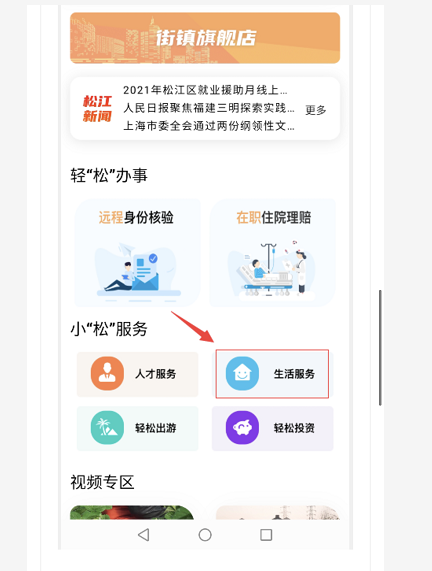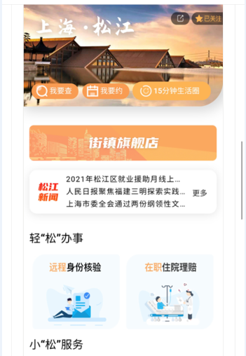 通过手机打开“随申办市民云”APP,可通过“发现”频道动态或者直接精准定位进入松江旗舰店主页。