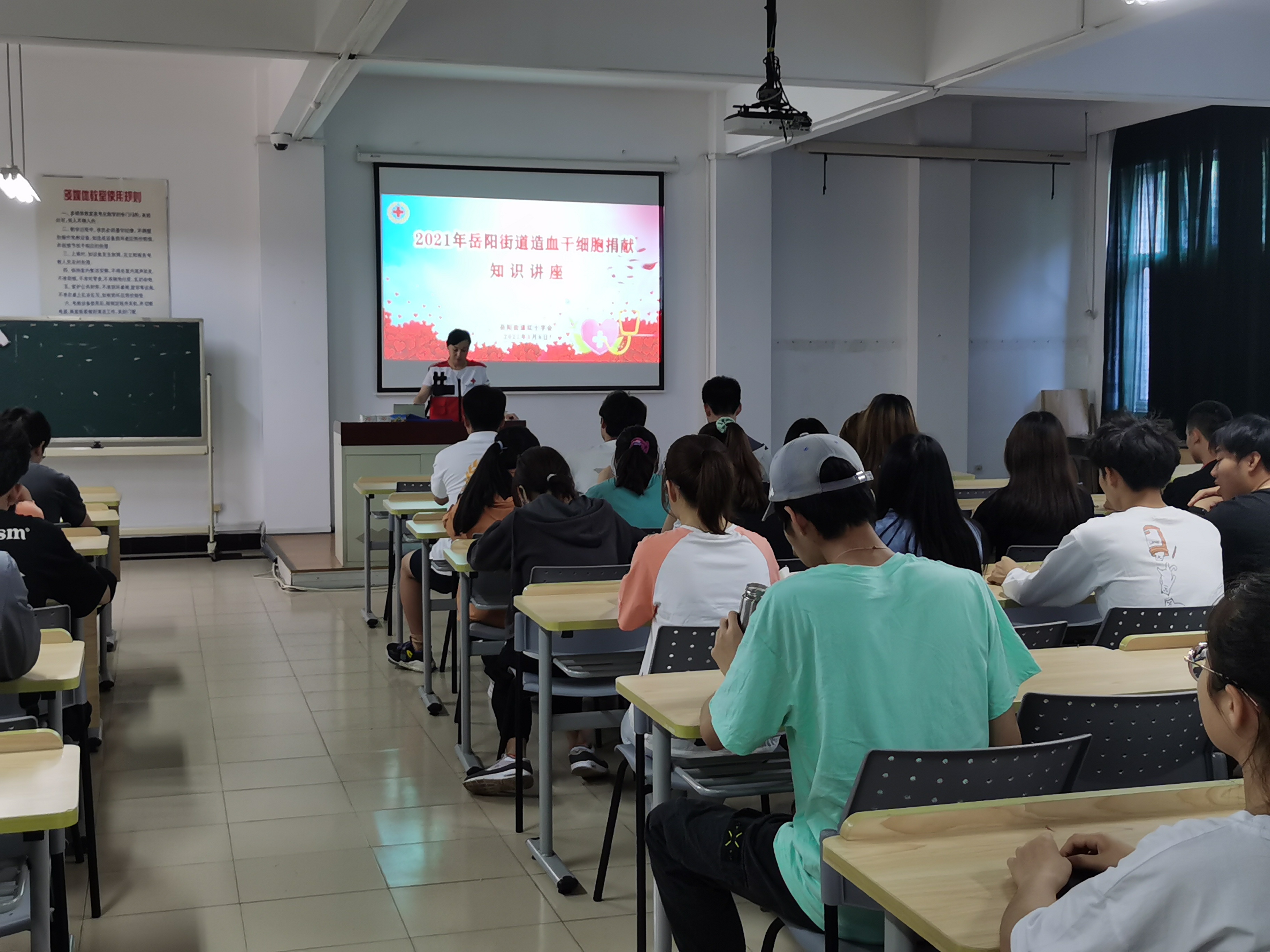 为了纪念第74个“5.8”世界红十字日,同时也为了进一步提高造血干细胞捐献者资料入库质量,5月8日,岳阳街道红十字会在上海农林职业技术学院为50位今年报名入库的志愿者开展造血干细胞捐献知识讲座。