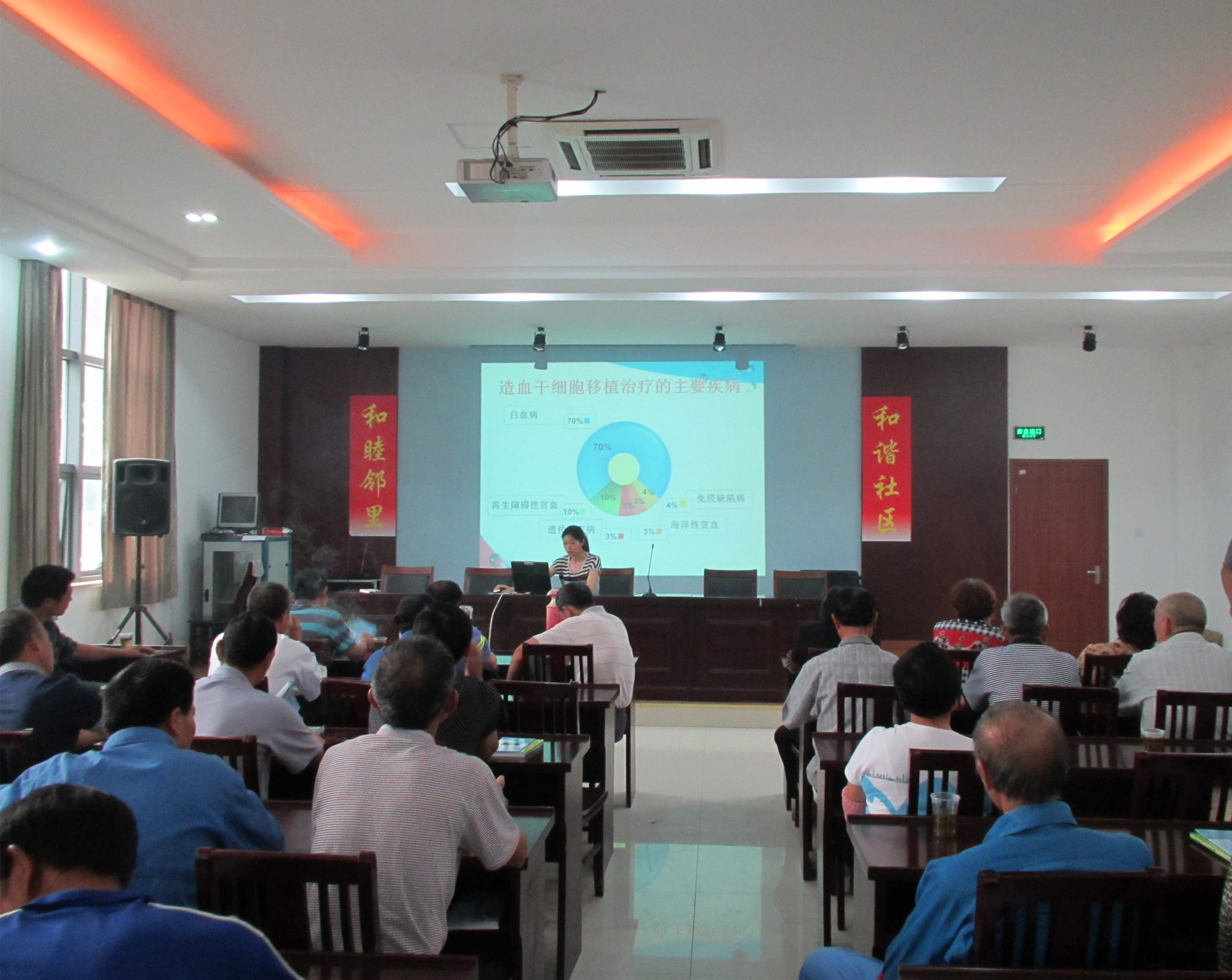 讲座有街道红十字宣讲团成员赵婷主讲。她以ppt的形式,从“为什么要进行造血干细胞移植手术”、“什么是造血干细胞”“怎样捐献造血干细胞”等几个方面着手,深入浅出的进行了讲解,通过讲座,排解居民对捐赠造血干细胞的恐惧与疑惑,鼓励更多的人参与到造血干细胞捐献的活动中。