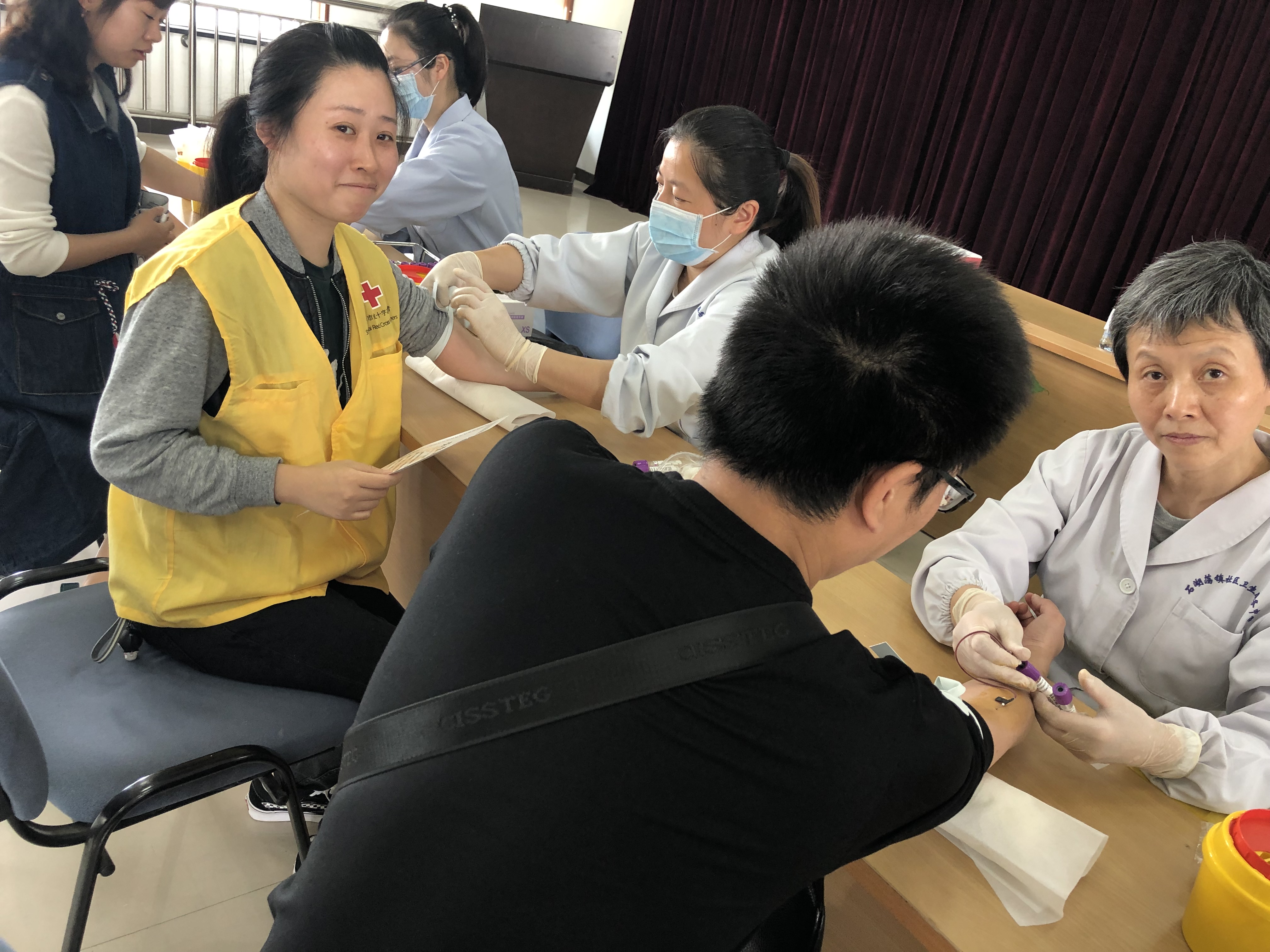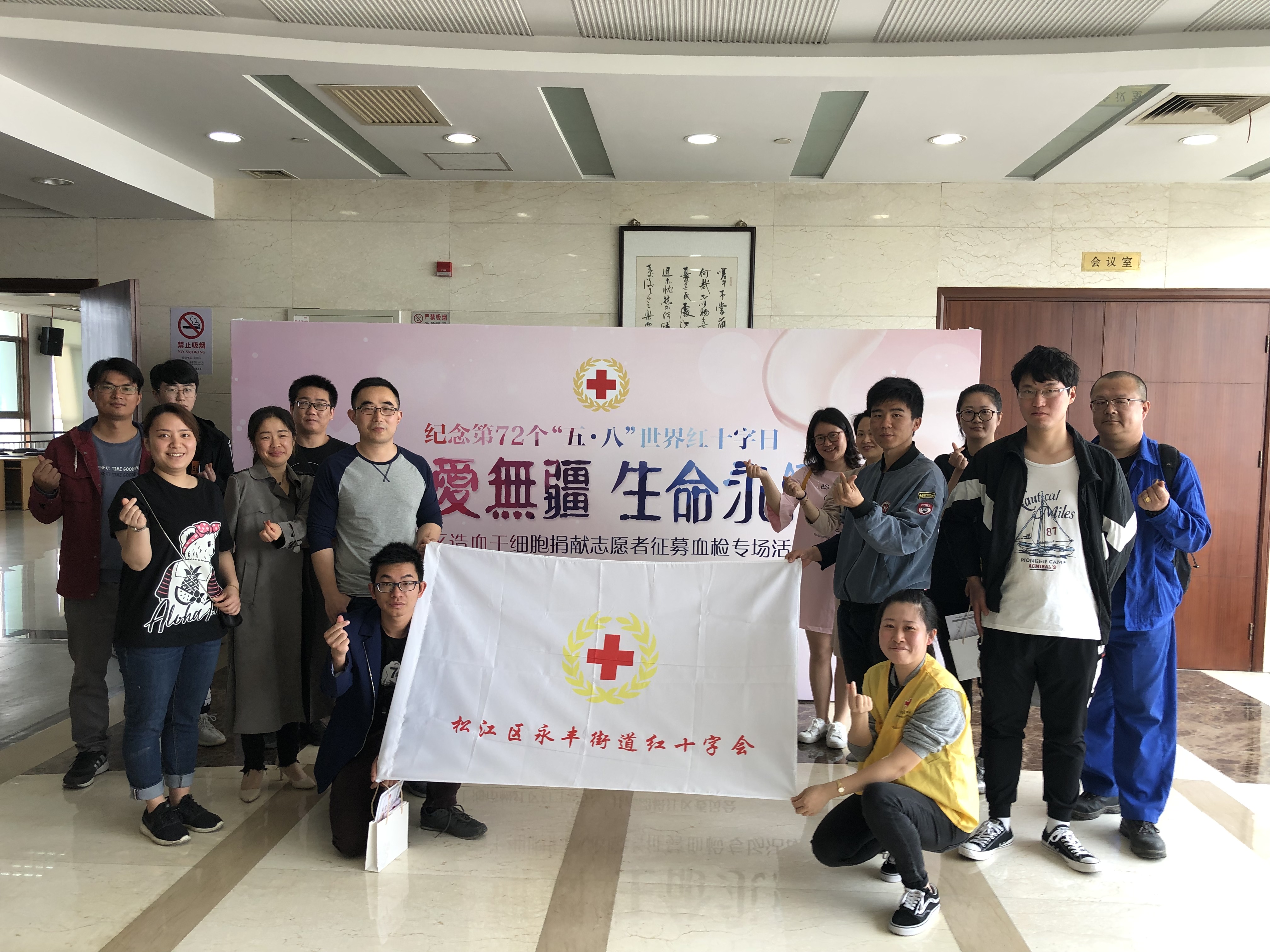 2019年5月10日上午,永丰街道红十字会组织来自居委会的社区工作者和来自共建单位上海航天精密机械研究所的青年们参加了由松江区红十字会主办的“大爱无疆 生命永续”造血干细胞捐献志愿者征募血检专场活动。