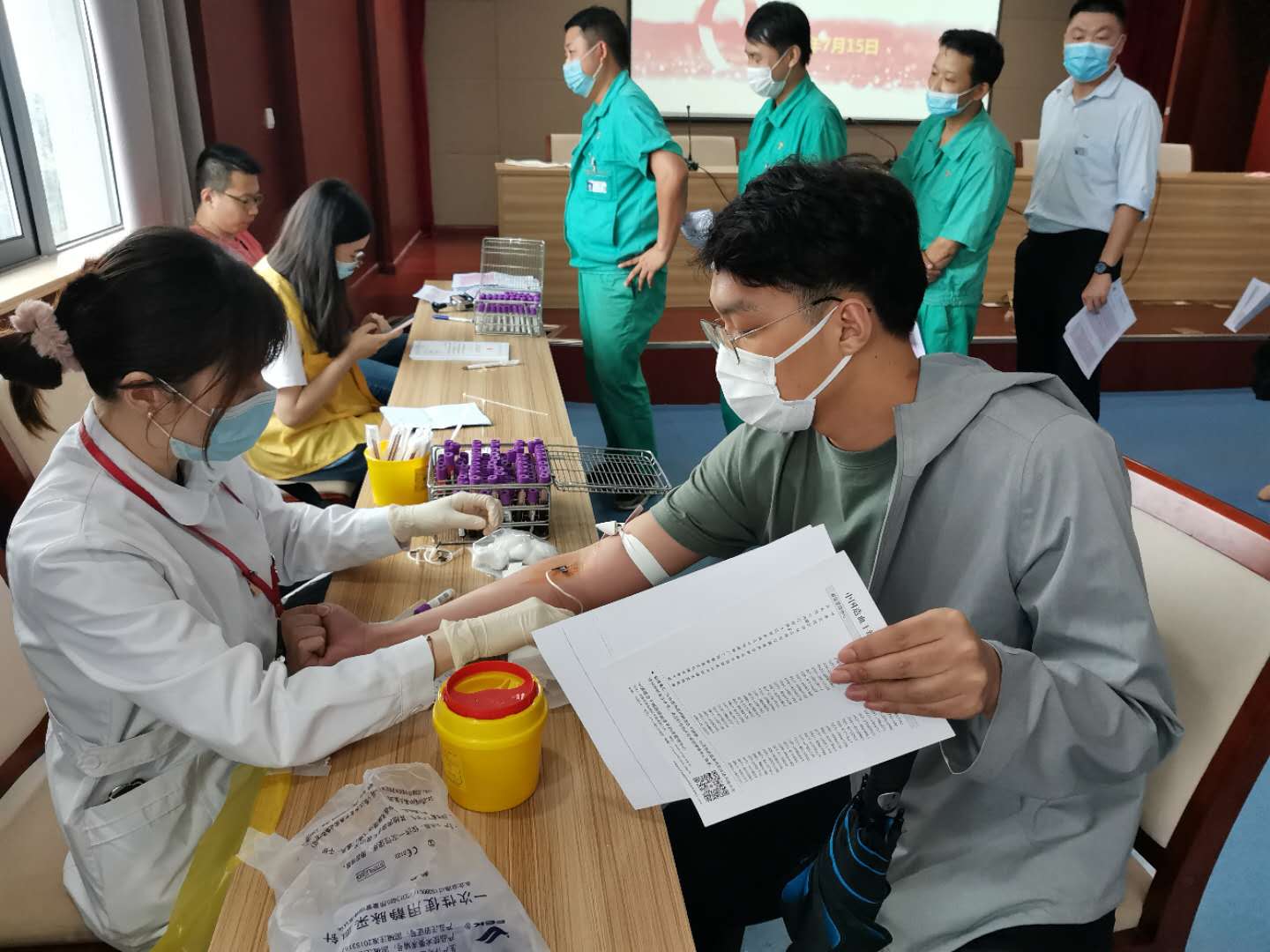7月15日,新浜镇红十字会组织志愿者到泖港镇社区文化活动中心室开展造血干细胞入库血检活动,镇机关、村居、企业等志愿者积极参与,踊跃报名,共有32名造血干细胞登记志愿者成功入库。