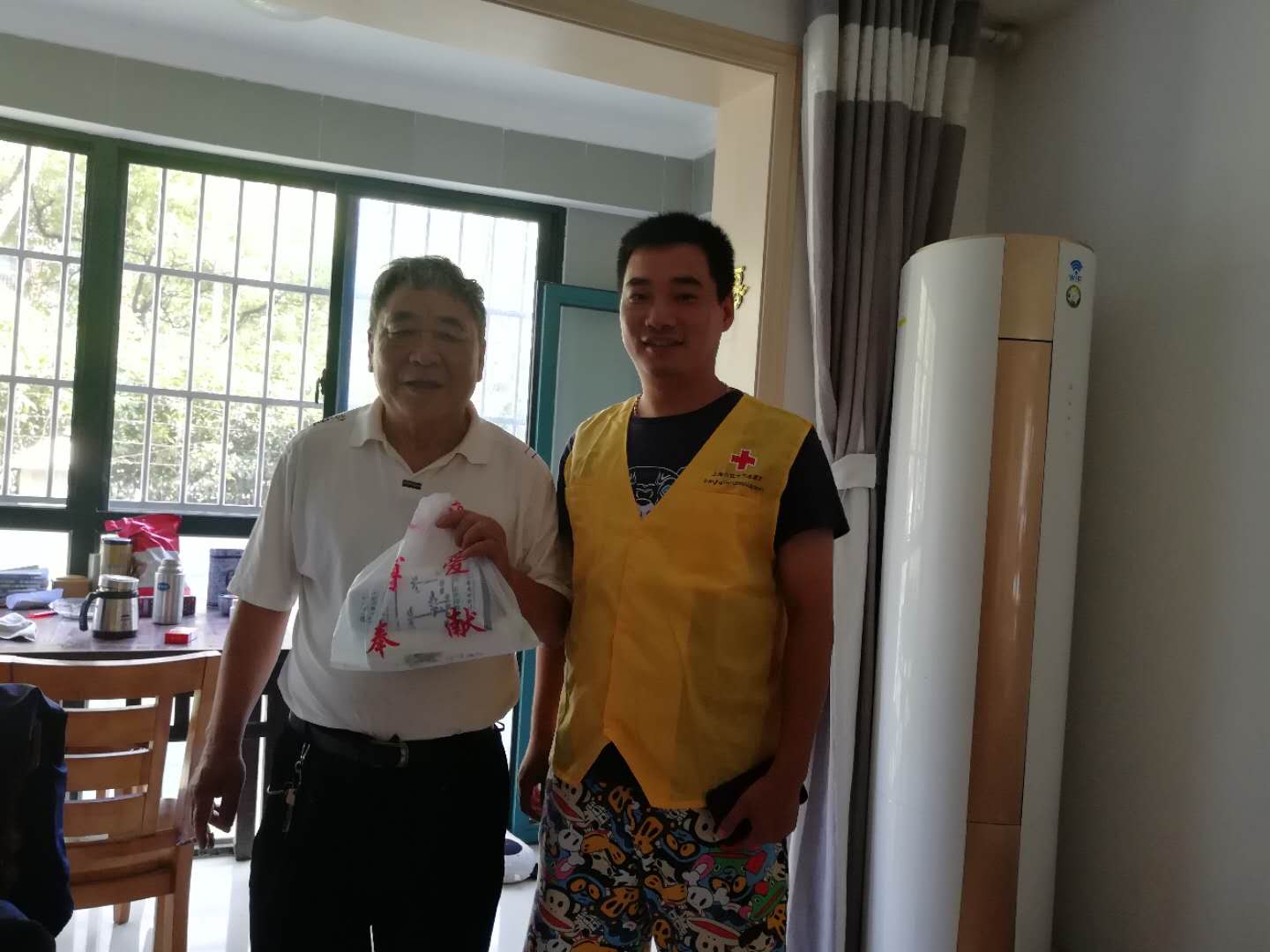 仓城居委会红十字工作人员不顾炎热冒着高温,走访了辖区内7名遗体捐赠志愿者,为他们送上了降暑慰问品,送上夏日的问候和美好的祝愿。70岁的老党员坦然说道:“我们这辈子,也没有为社会做过什么事,希望尽自己最后的力量帮助有需要的人。”