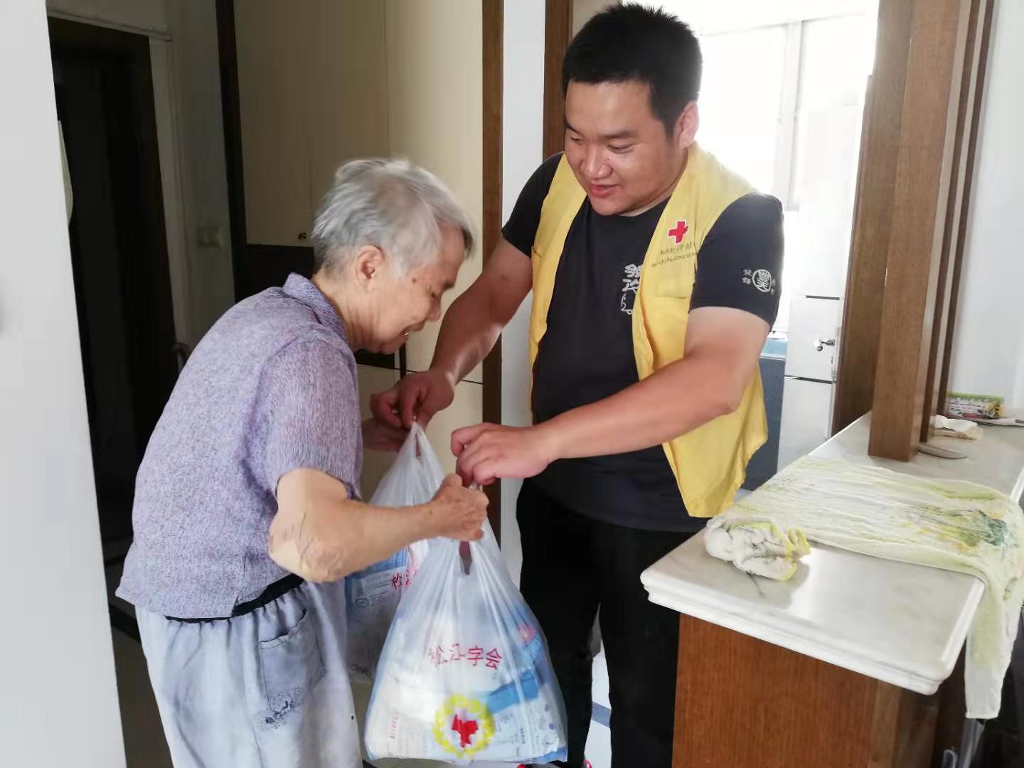方松街道红十字志愿者为老人们送上了重阳节的祝福,送去了重阳糕、麦片、长寿面等慰问品,并详细了解了他们的生活情况和身体健康状况,对他们的善举表达了敬意。