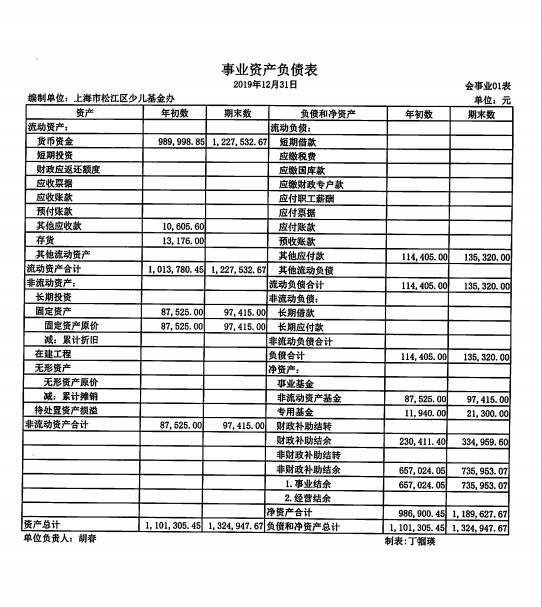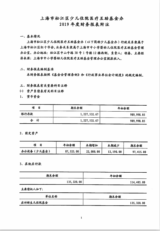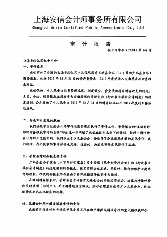 上海市松江区红十字会公示2019年度少儿住院医疗互助基金审计报告