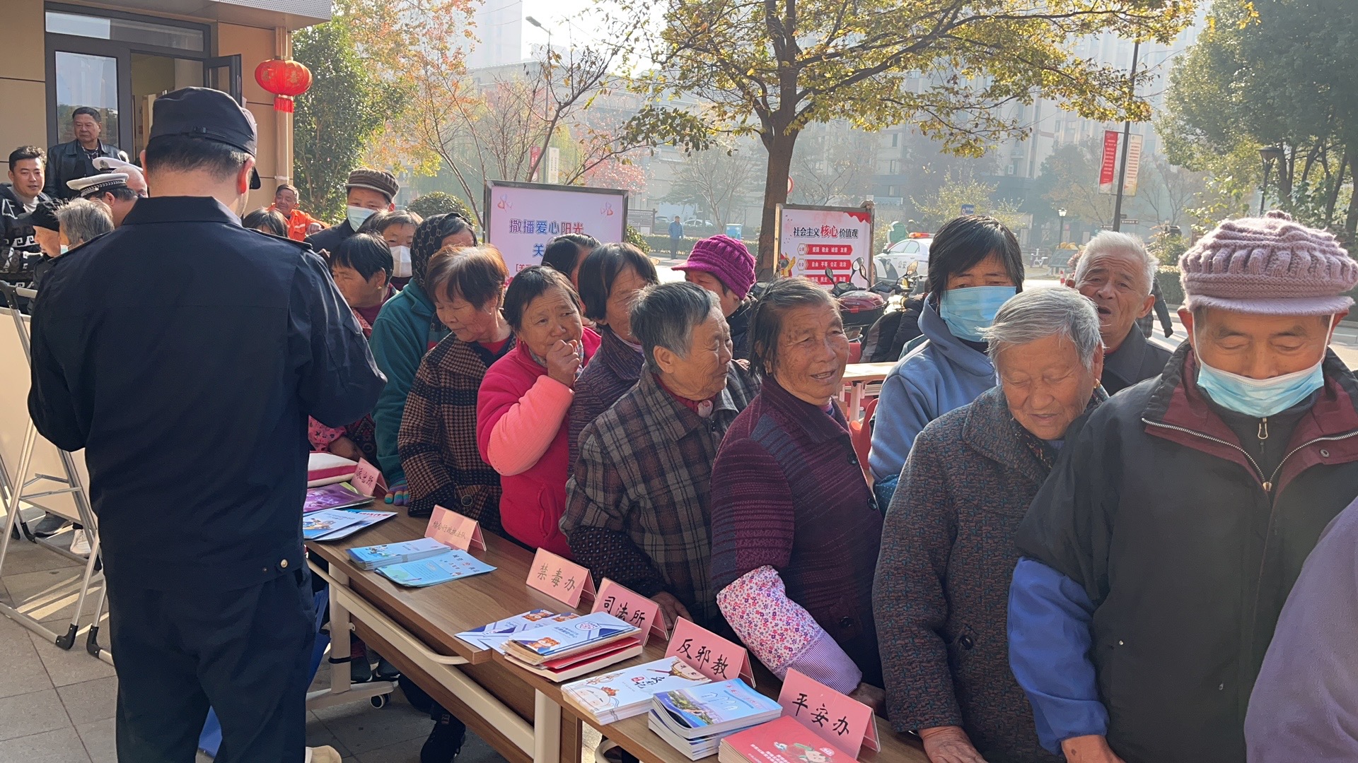 现场综合为老、妇联、团委等多家单位部门参与了志愿服务。开展以低碳环保、法律援助、医疗卫生、计划生育、安全宣传以及小家电维修、理发、磨剪刀、爱心修补等多样化的便民利民志愿服务。丰富多彩的宣传形式吸引了300余名村(居)民参与。20余名志愿者们身穿马甲,或穿行于各个区域维护秩序,或发放宣传册等,形成了一道道亮丽的风景线。