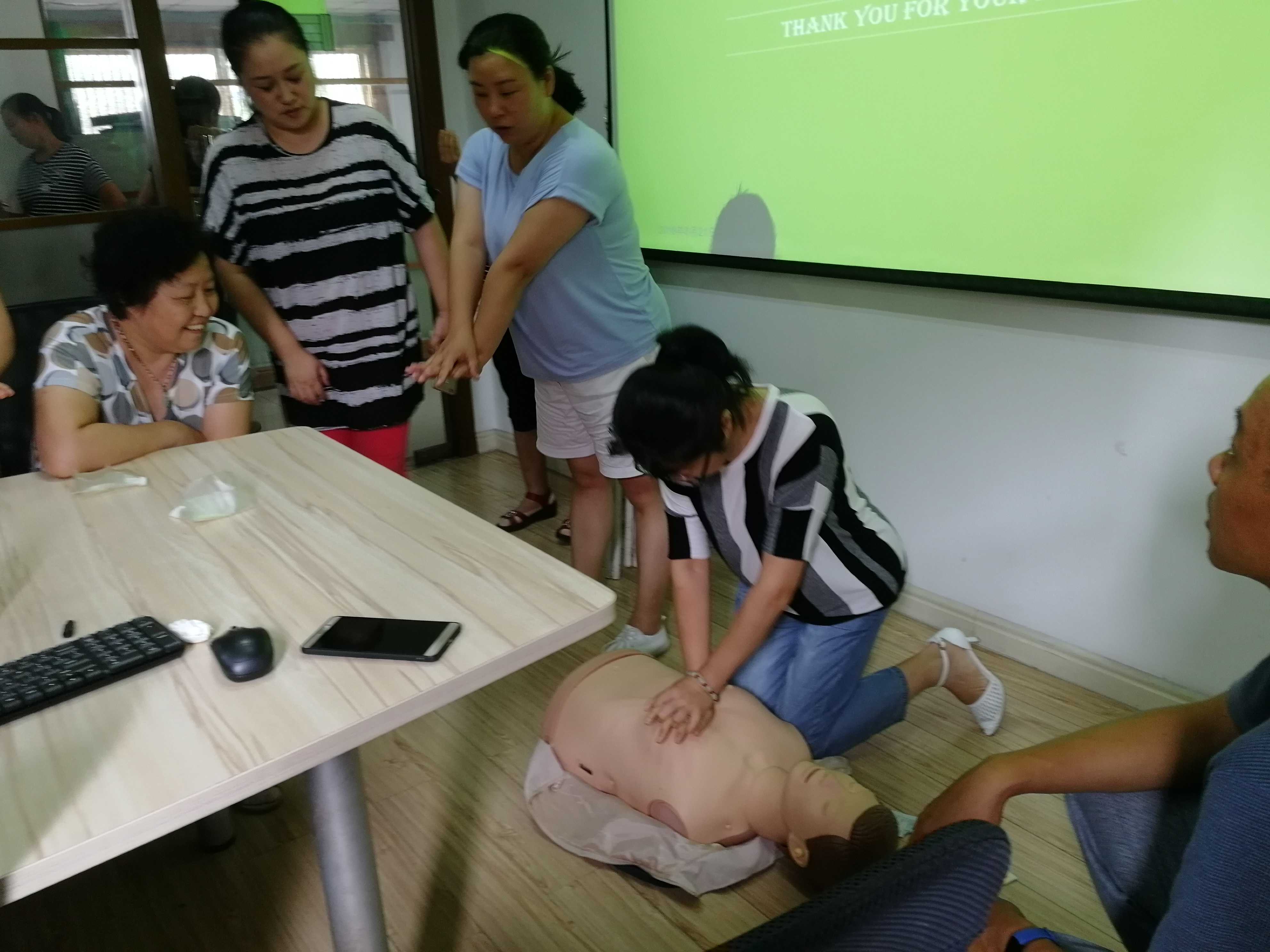 老师就呼吸道梗塞急救法、心肺复苏、意外伤害AED使用等应急技能进行了详细的讲解,还通过理论与实践相结合,将学员分组进行实践操作,并用橡胶人体模型给大家示范讲解心肺复苏、创伤救护等常用的急救技巧。在场的员工认真听讲,积极参与,都纷纷表示收到了实实在在的效果。