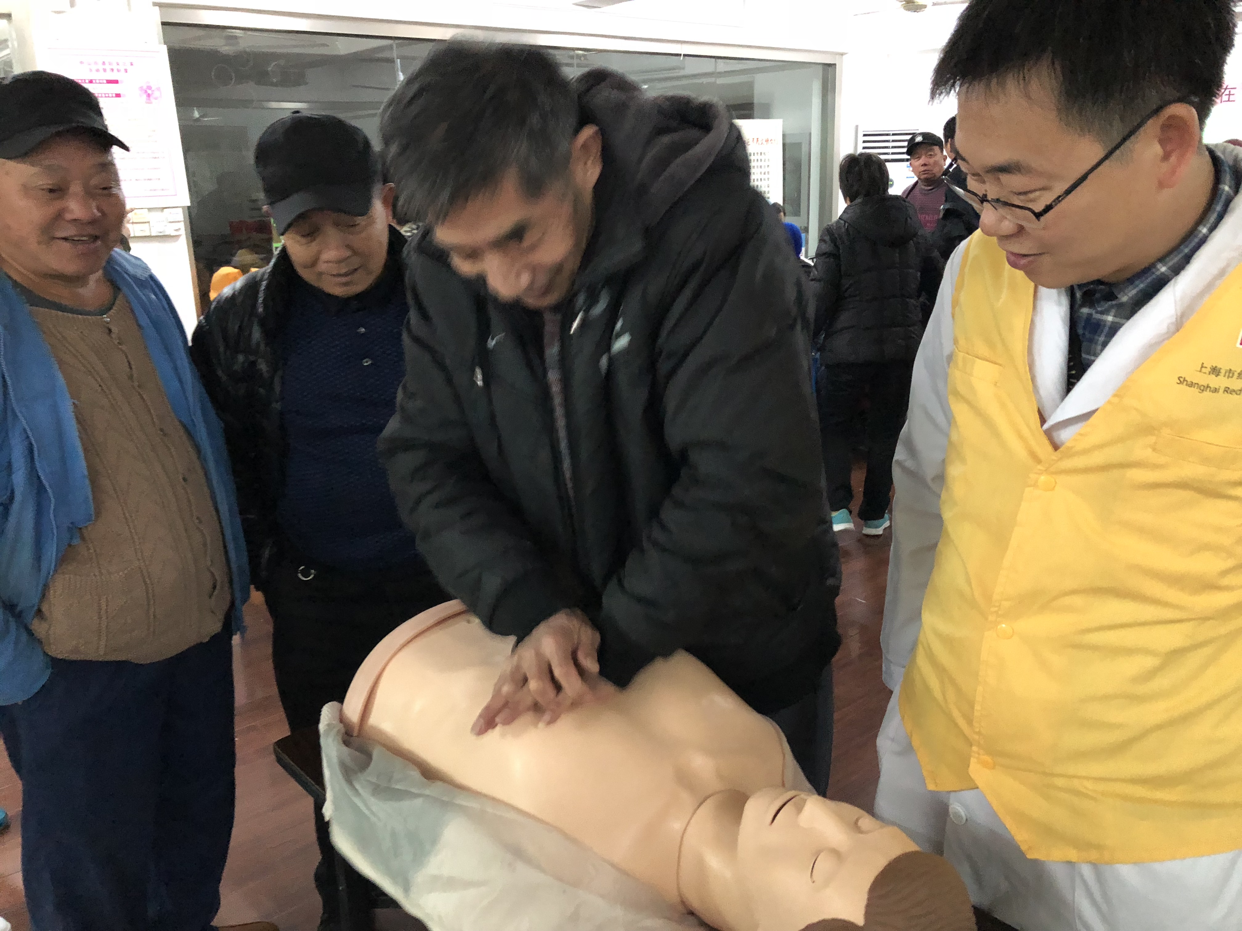 2018年3月5日上午,松江区红十字会和方塔红十字中医医院义诊团走进蓝天五村居委会老年活动室开展学雷锋活动。这次的学雷锋活动除测量血压这个项目外,还增添了中医内科、妇科、外科等项目,让老年人可以享受到更多的检查。现场还增设了一个半身模拟人,医生志愿者们在现场悉心地指导有兴趣的居民如何进行心肺复苏、人工呼吸等急救技能的操作。