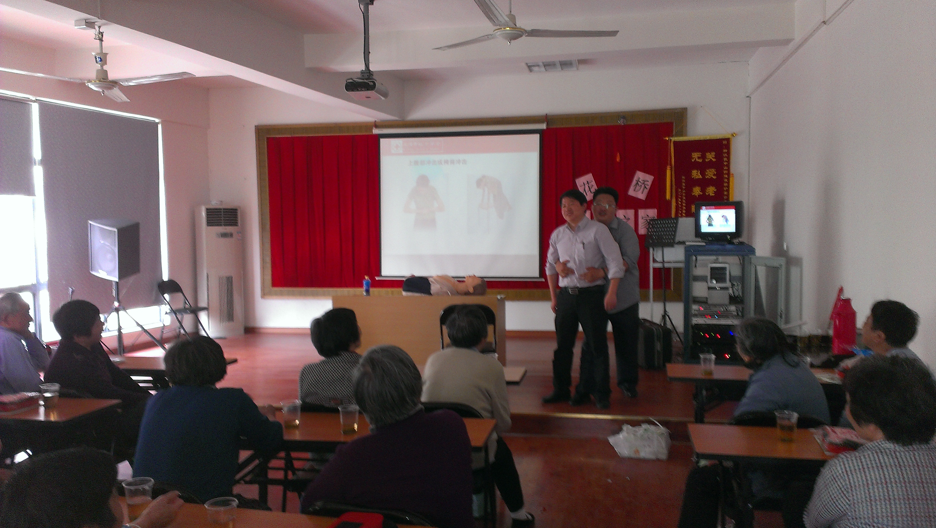 2014年5月8日,中山街道红十字会邀请曾佩俊医生在花桥居委会老年活动室组织开展红十字急救普及培训,共有来自花桥、中山苑两个居委会的70名社区居民参加此次培训。