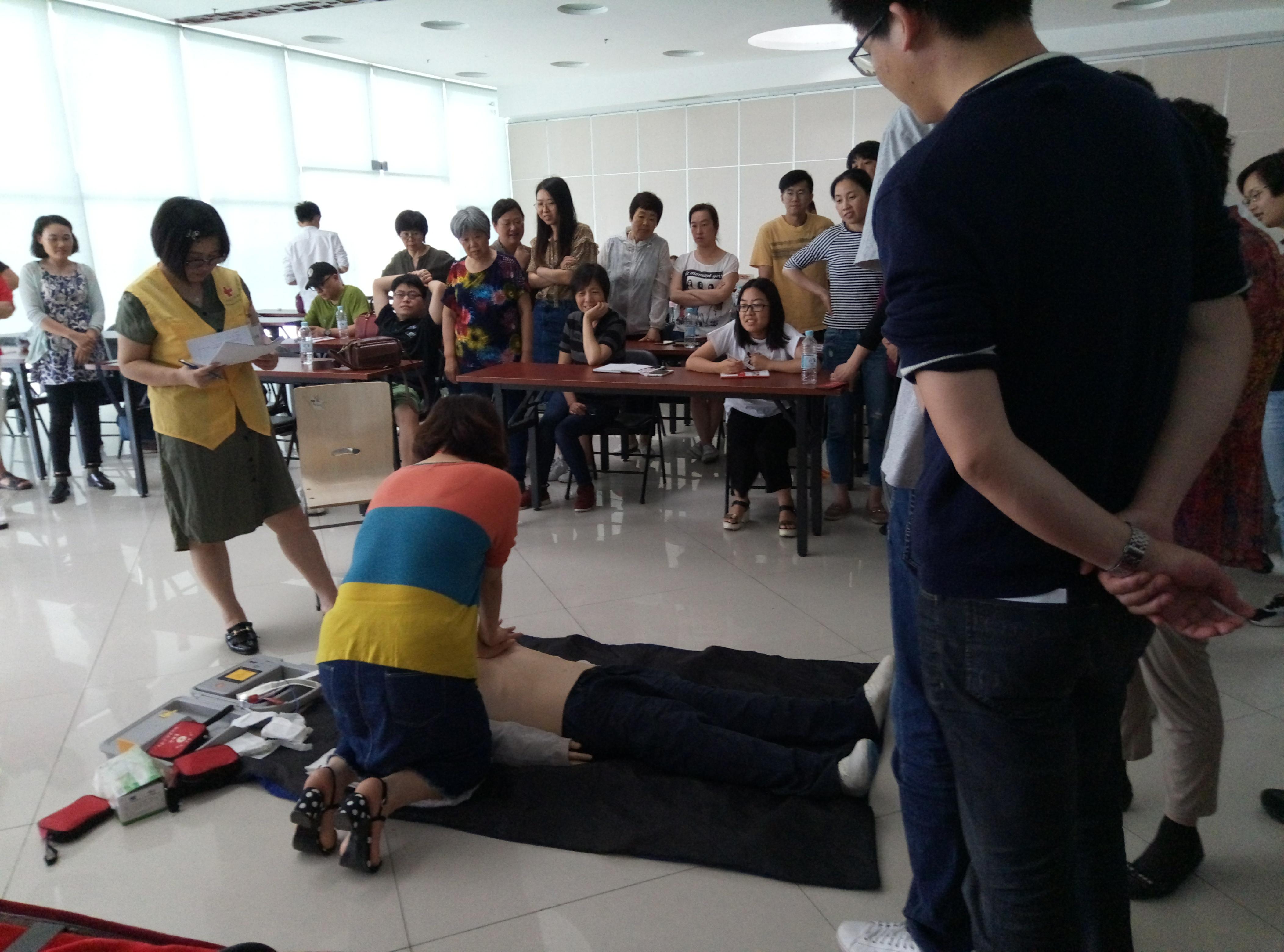 培训中,红十字救护师资为大家现场演示并讲解了红十字运动基本知识、止血包扎、突发事故的现场急救,如何在抢救的黄金时间给生命垂危的人做心肺复苏、AED操作、气道梗阻的处理等。老师以理论和实践培训穿插结合的方式展开,而实践操作环节以分组方式进行。现场气氛活跃,互动的形式更好的调动了大家的积极性,帮助大家在仿真的情景中,学会了应急的知识。