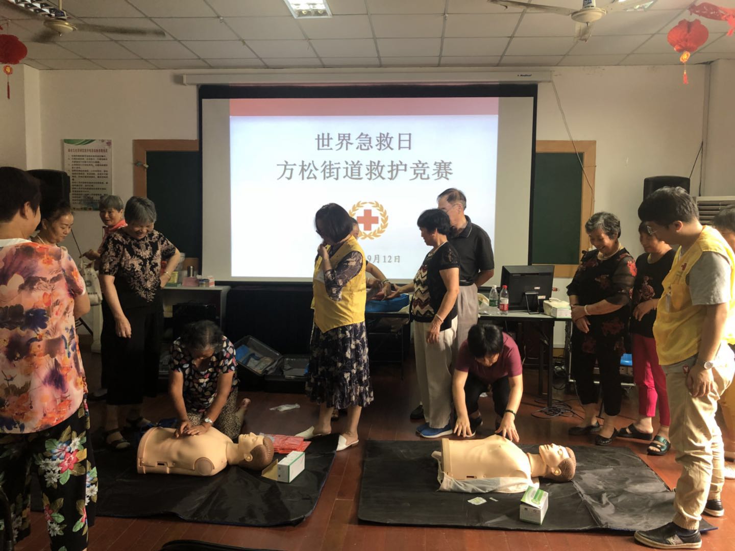 为广泛普及应急救护知识和技能,在第19个世界急救日来临之际,9月12日下午方松街道红十字会开展了以“交通安全救在身边”为主题的救护竞赛,来自方松辖区居委会的50名社区居民参加了此次活动。