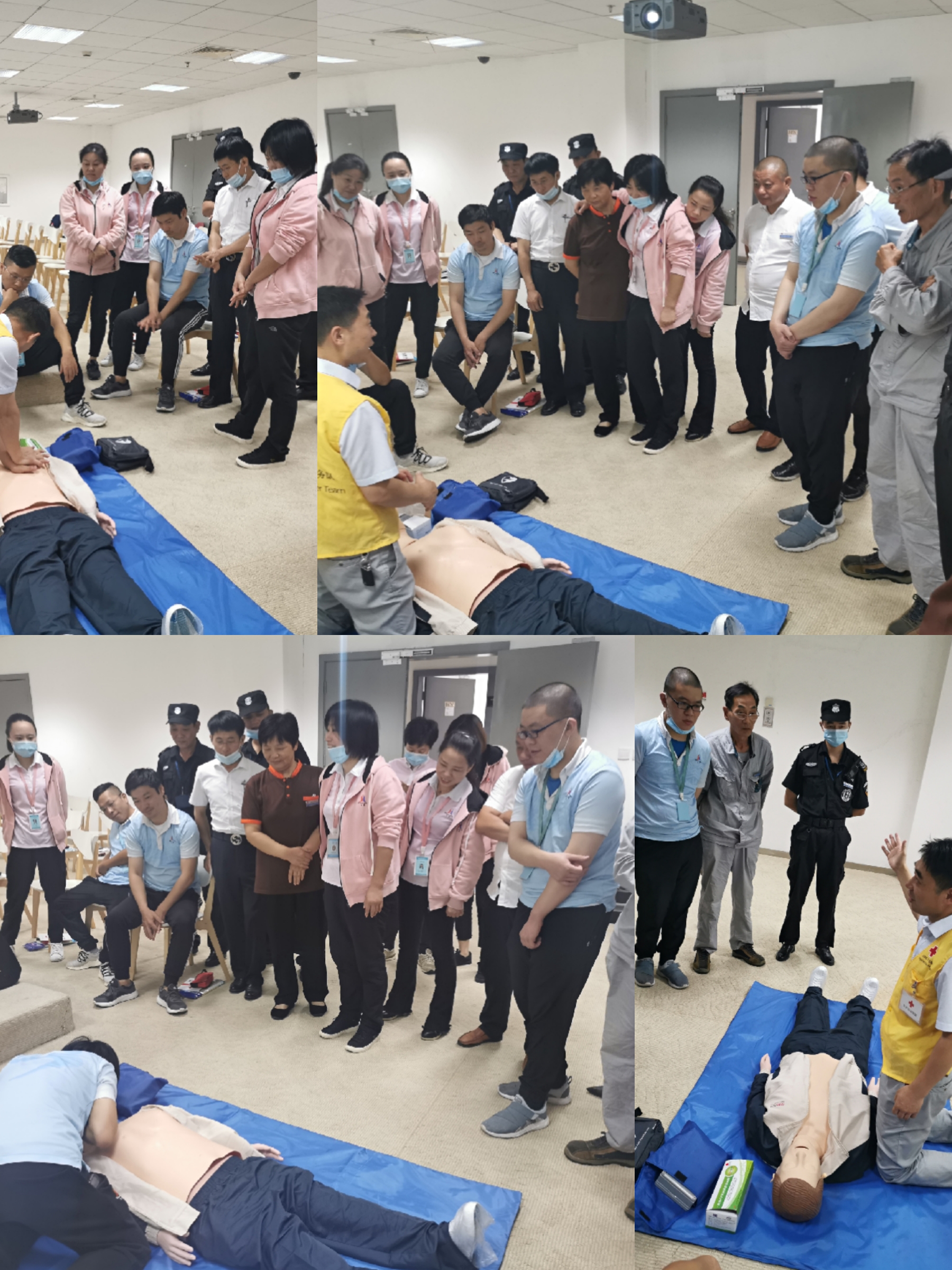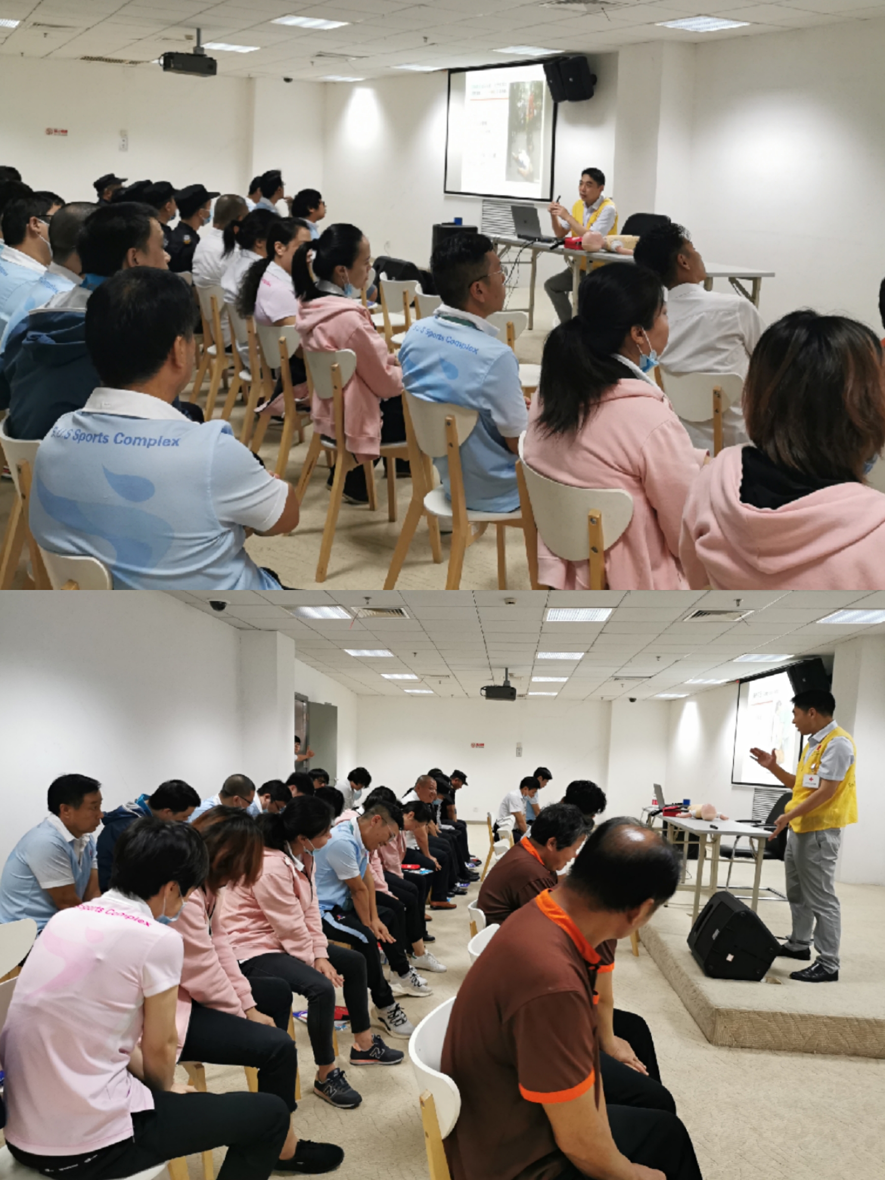 为进一步普及应急救护知识,提高辖区服务行业人员公的安全防范意识和自救互救能力,弘扬“人道,博爱,奉献”的红十字精神,广富林街道红十字会于 2020年9月10日在松江大学城体育中心组织开展了一期现场应急救护培训。此次邀请了红十字培训师资度学文为中心员工讲解应急救护理论知识及实操技巧,共计32人参加了此次培训。