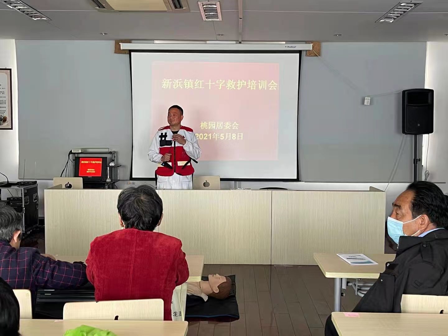 5月8日正值世界红十字日,当天上午,新浜镇红十字会在桃园居委会开展应急救护培训进社区活动,社区党员、居民、楼组长40余人参加。
