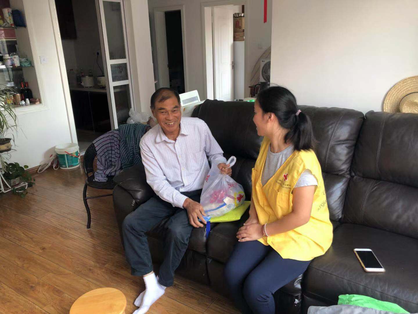 在走访中,老人对红十字志愿者的来访感到很惊喜,收到红十字会送上的重阳节慰问品,更是一再的表示感谢。红十字志愿者在与老人的交流中了解了老人的生活近况,同时,志愿者对老人无私奉献的高尚行为致以崇高的敬意。