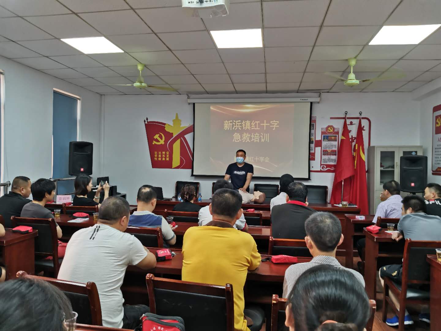 培训由镇红十字救护师资为大家讲解关于在商户区与居民楼等场所容易发生的意外伤害事件的自救互救方法,重点讲述了在突发情况下,如何在救护车还未到达前进行现场判断,使用心腹复苏技能进行抢救。