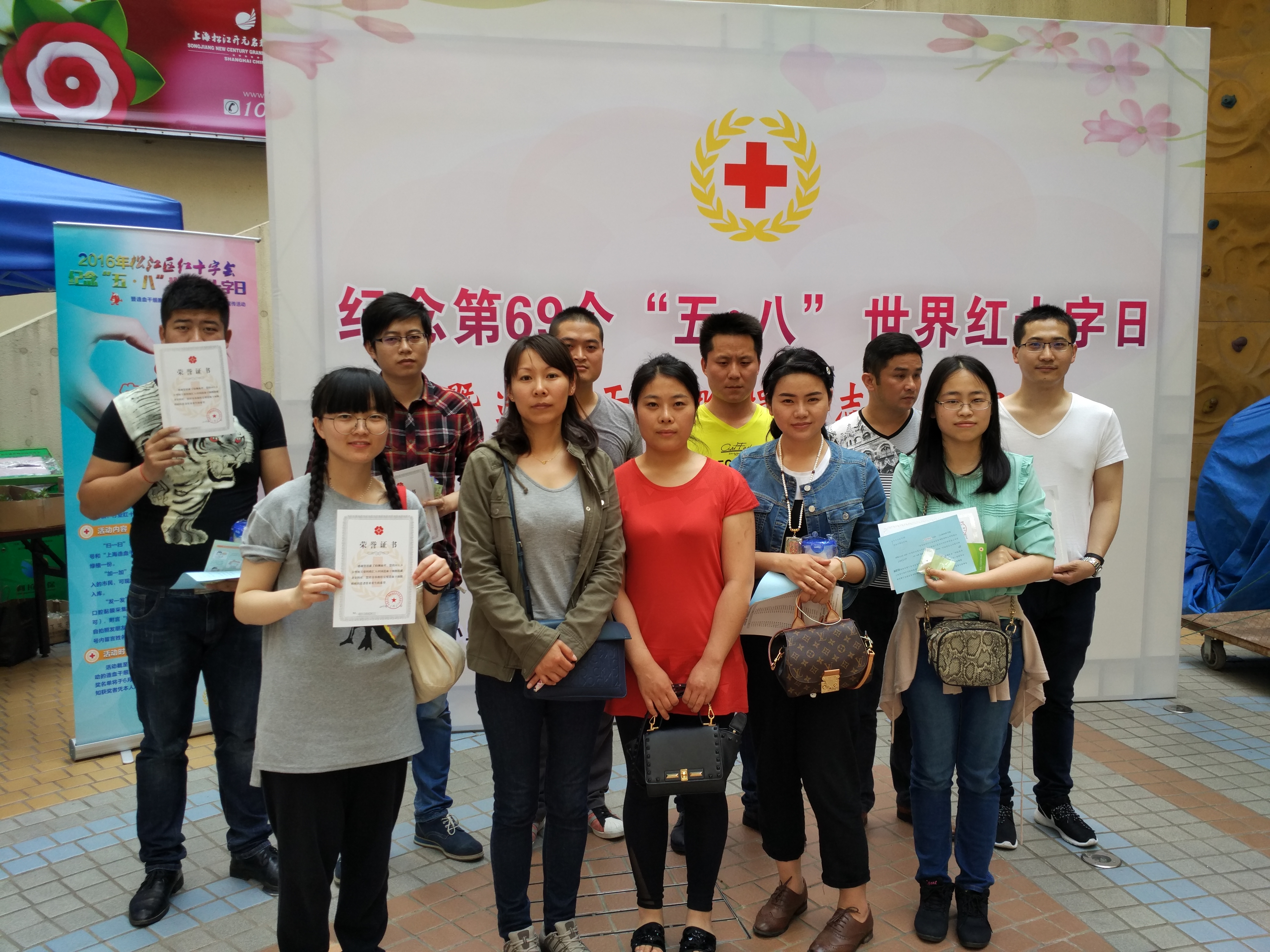 5月6日下午,九里亭街道11名青年志愿者在松江开元地中海参加了红十字造血干细胞捐献活动。