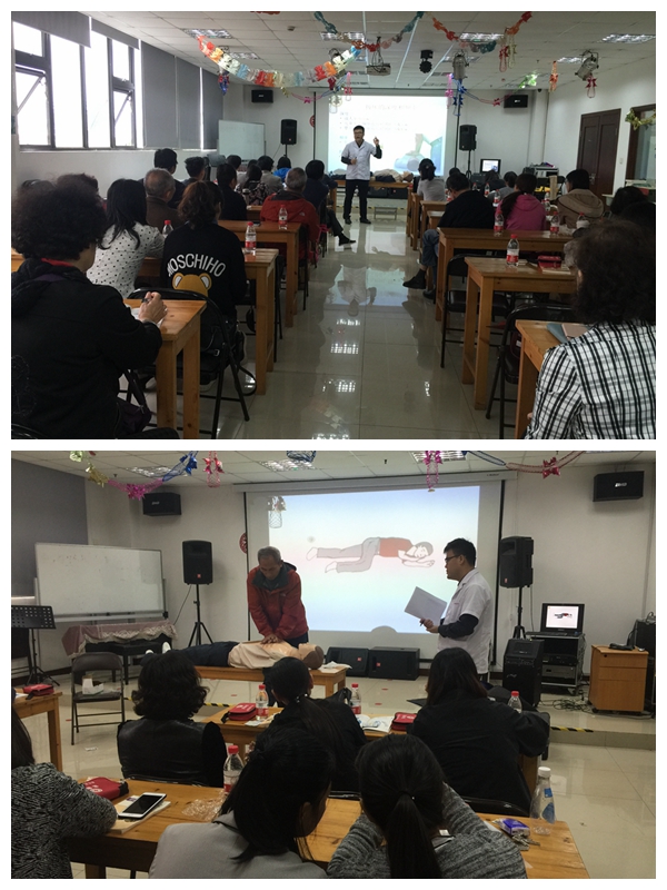 第二天则更侧重于教导大家在对呼吸,心跳骤停的伤病员如何进行心肺复苏和AED的救治,由卫生人才培训中心王宁老师为大家演示心肺复苏的一系列过程,指导学员们AED的具体使用方法,并且通过老师学员之间一对一实际的考核和指导,加深学员们对操作要点的掌握程度。