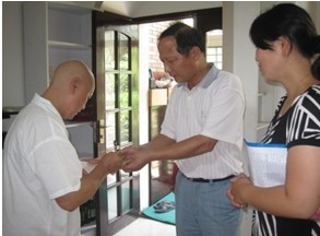 8月6日,镇红十字会领导和国亭红十字干部一行,来到前期排摸被确定为患有卵巢癌的困难家庭李小妹家中进行上门探望,并亲手送上帮困金。同时,鼓励李小妹保持良好的心态,争取身体能早日康复。病人接过帮困金,热泪盈眶地表示感谢,真切感受到红十字会送来的关爱、带来的温暖。 红十字与世博同行,红十字博爱阳光温暖人心,红十字会播撒人间真情,使生活更美好,社会更和谐。