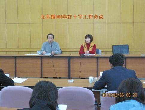 今天,镇红十字会召开了基层红会干部会议。会上,下发了九亭镇2010年红会工作计划。部署了近阶段遗体捐献、救护培训等工作。周美华副会长到会作了讲话,她说,今年是世博年,松江要打造成为世博会旅游目的地城市,所以今年本镇红会的各项工作一定要主动参与世博、服务世博、奉献世博,在世博旅游目的地上展示红会的良好形象。进一步提升我镇红十字工作的总体水平,推进红十字事业又好又快地发展。