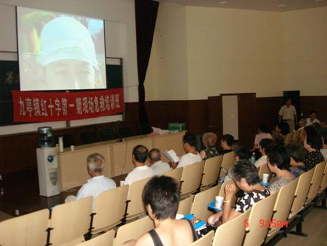 根据区红十字会2007-2010年卫生救护工作规划,提高居民应对突发事件的自救互救意识和能力,九亭镇红十字会分别于8月6日与8月8日在九亭中学和镇社区卫生服务中心举办了二期现场急救培训班, 现场座无虚席,来自基层各居委会约150多位居民认真听取了区中心医院王医师讲授心肺复苏术和治血、包扎术及现场示范。主讲老师以通俗的语言向居民们讲述了现场急救的知识,深受广大居民的好评。散课后,居民们久久不愿离去,自己动手演练,很快掌握了心肺复苏急救的要领。 通过这几天的培训,不但扩大了红十字会在社区中影响,而且也提高了居民自救互救意识和本领。