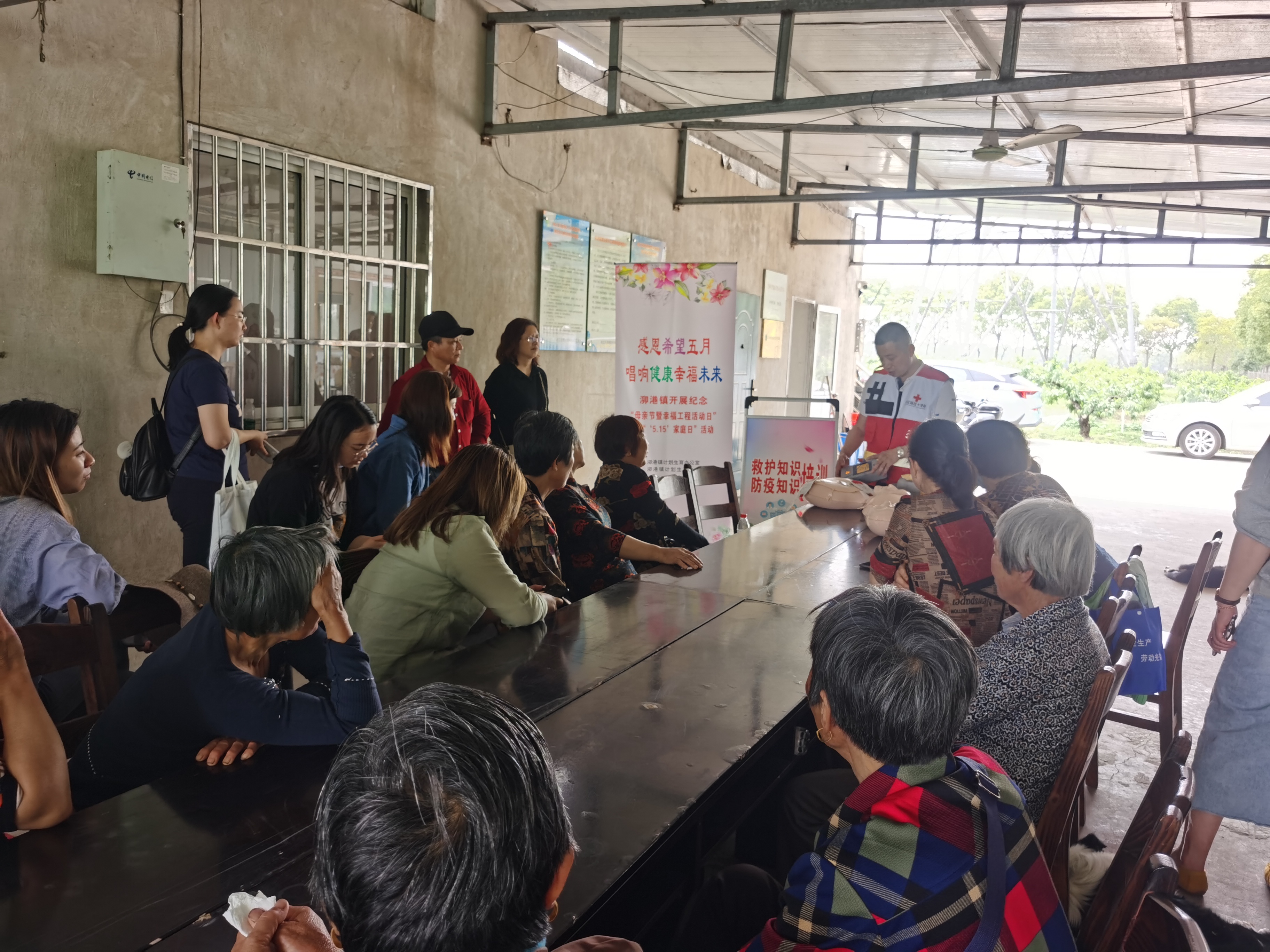 关爱生命,救在身边。5月8日中午,泖港镇红十会为我镇失独家庭开展了一场急救知识普及培训。镇红十字会特邀泖港镇社区卫生服务中心龚明军医生前来授课。龚医生根据日常生活突发意外较多的情况,详细讲解了如何拨打120、止血包扎、骨折固定和心肺复苏、气道梗阻、AED等相关急救知识和急救的手法,如最佳急救时间、急救手法相关步骤和急救时需要注意地方。为强化学习效果,提高实践能力,龚医生现场通过实际演示以边解说边操作的方式向他们传授方法与操作要点。本次培训受到大家的欢迎和赞誉,参与者受益匪浅。