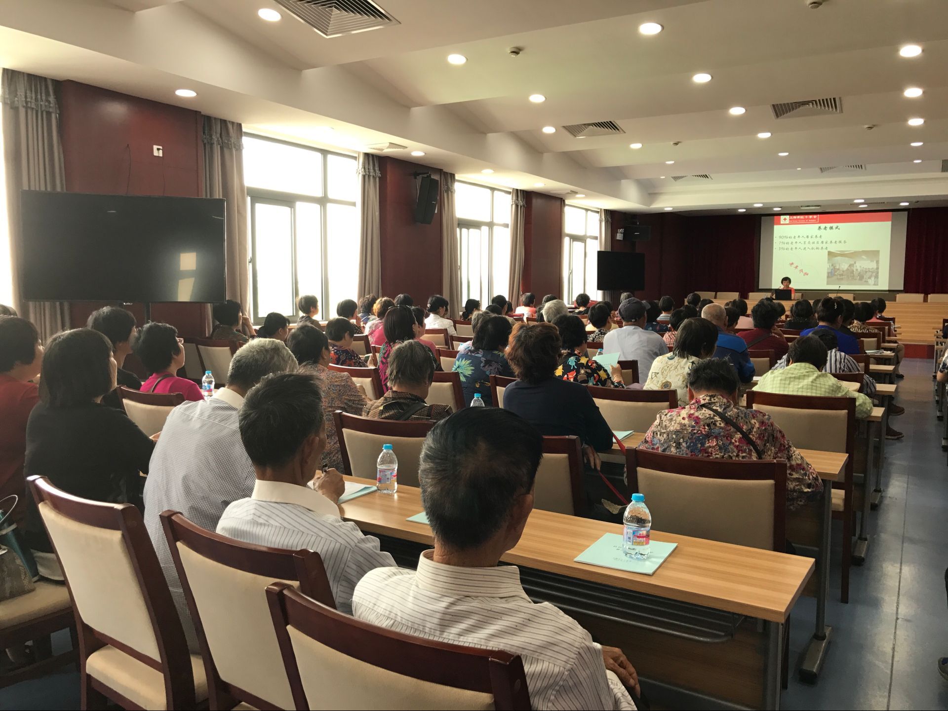 5月25日下午,泖港镇红十字会协助区红十字会组织开展老年介护培训,来自泖港、车墩、叶榭、新浜4个街镇的100名失智(失能)老人家属进行介护知识培训。
