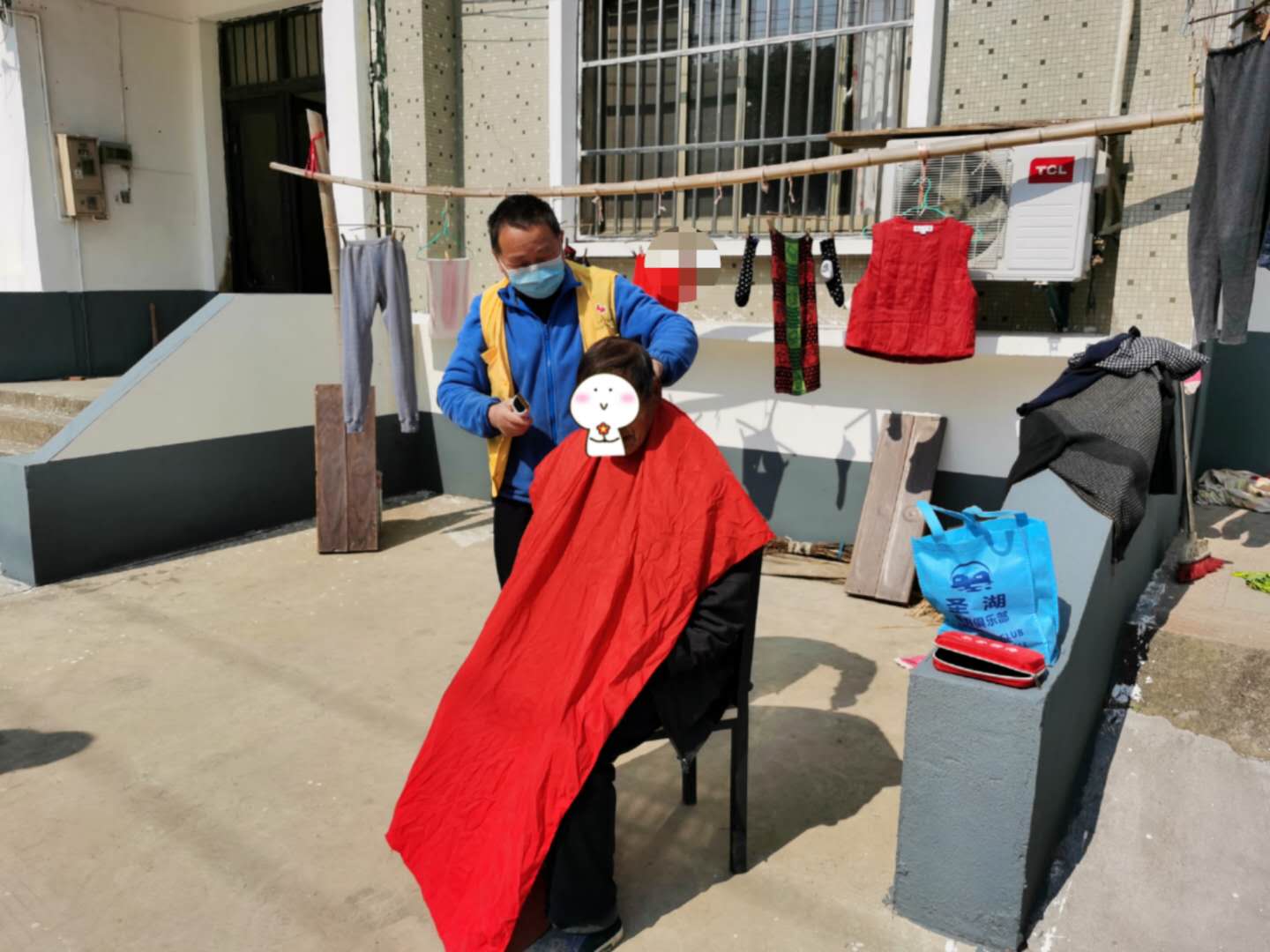 红十字志愿者李才根得知这一消息,积极响应号召,自告奋勇为村内的老人理发,为避免人员聚集导致交叉感染,李师傅送理发服务到社区老百姓家门口,一把凳子、一套理发工具,就“开张”了,他用专业的技术,解决老人们的“头”等大事。短短几分钟,老张清爽利落的头发便剪好了,他摸了摸自己的新发型,高兴的说“年前本来要理发的,但是因为有点事没理成,这疫情来的突然,现在头发又长长了,邋里邋遢的,也不敢到外面去,你们来的太及时了,真是谢谢你们!”