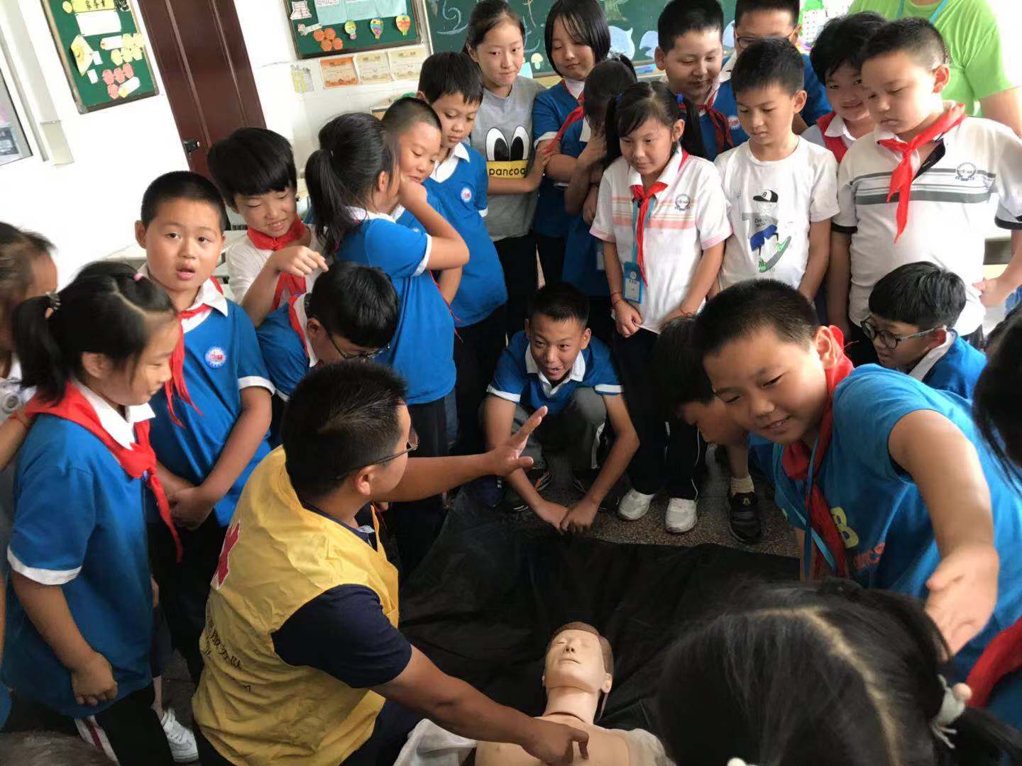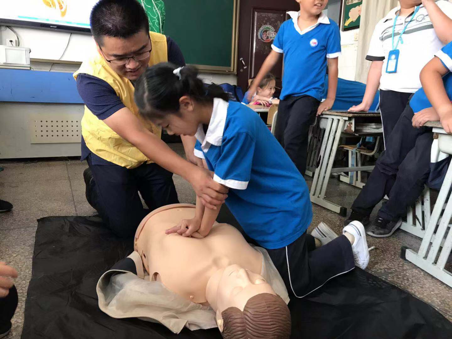 培训现场,王医生采用问答互动的方法为小朋友讲解了触电、溺水、火灾、烧烫伤、气梗、高处跌落、拥挤踩踏等突发事件的应对措施,还教会小朋友如何拨打120电话求救。为了让孩子们能够听懂和掌握急救方式,王医生还手把手地指导孩子们心肺复苏操作方法,孩子们争先恐后,个个都当了一回“小小救护员”,现场气氛欢乐融洽。