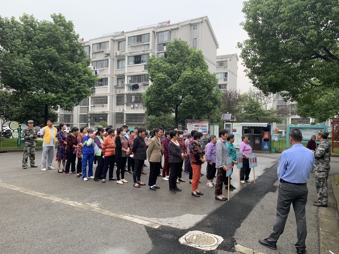 当警报响起时正式开始,参演居民紧张有序,按照小区疏散方案前往疏散点集结,现场参演观摩人员共计240人。