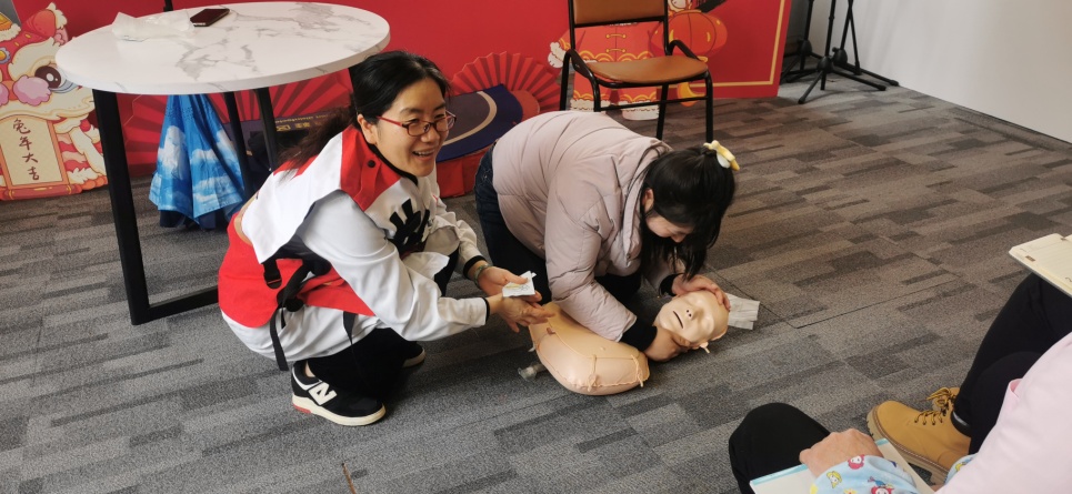 王老师以理论和实操相结合的方式介绍了应急救护、心肺复苏法等急救知识,亲身示范如何正确使用海姆立克法进行急救、心肺复苏的操作流程AED的使用方法。课后,王老师积极指导学员们亲身实践,确保学员们能够更深刻地理解急救知识,掌握日常生活中必备的应急救护技能。