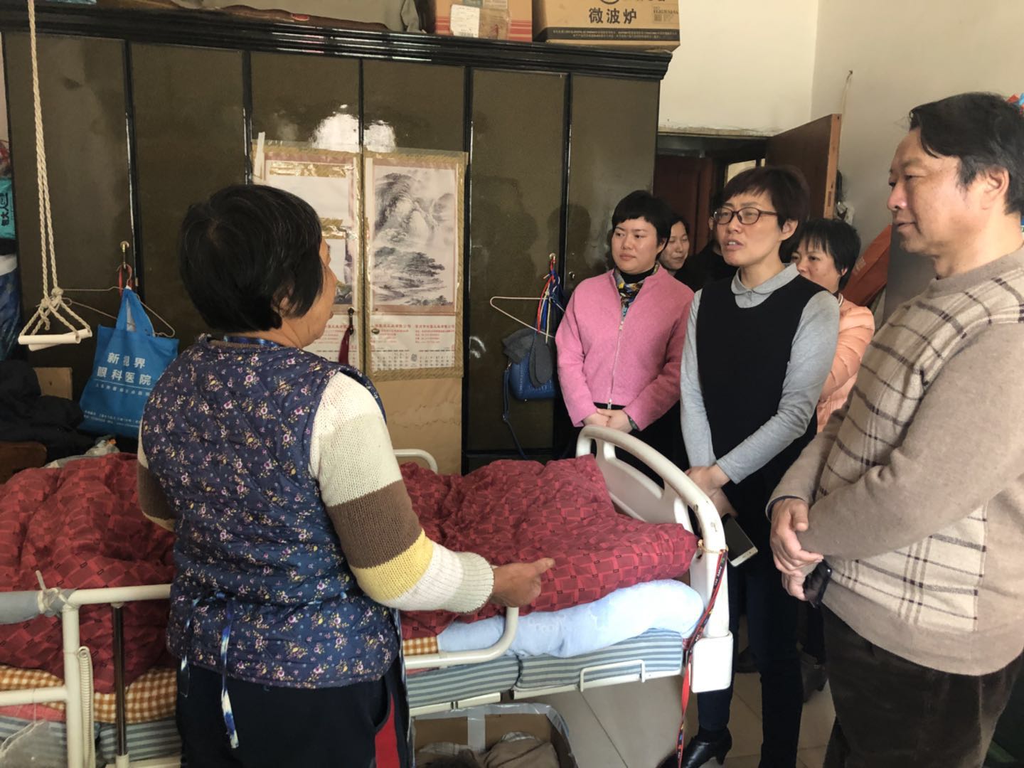 随后,调研组一行来到汇桥村失智失能老人家中,在调研过程中,孙华林提出希望整合部门资源,提供志愿者上门服务,真正做到群众所求、红会所能。基层红会干部和志愿者也提出了社区红十字会开展工作的难处,孙会长就如何开展社区红十字工作进行深入的探讨。