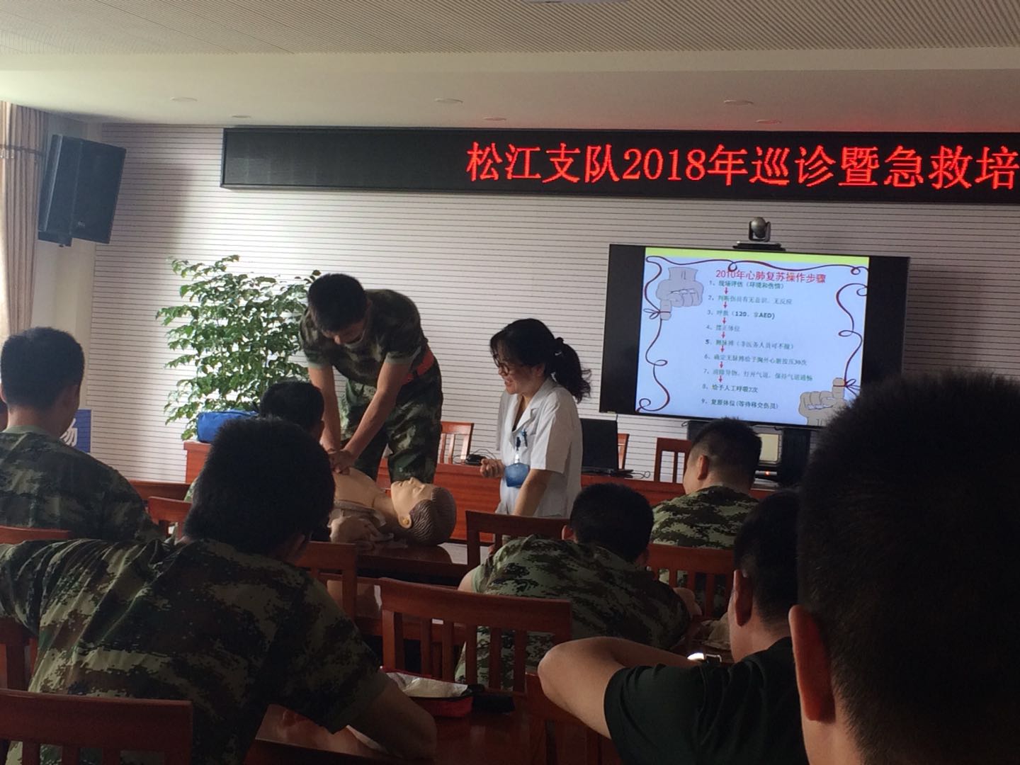 培训中,王萍丽医生讲解了救护概念、心肺复苏、创伤救护以及火灾等意外伤害的急救处理。采用理论与实际操作相结合的授课方法,通过使用模拟人教具,现场引导参训官兵对心肺复苏和人工呼吸等救护知识进行了模拟训练,并对学员动作一一进行指导、纠正,争取让每位参训官兵都能熟悉掌握急救要领。