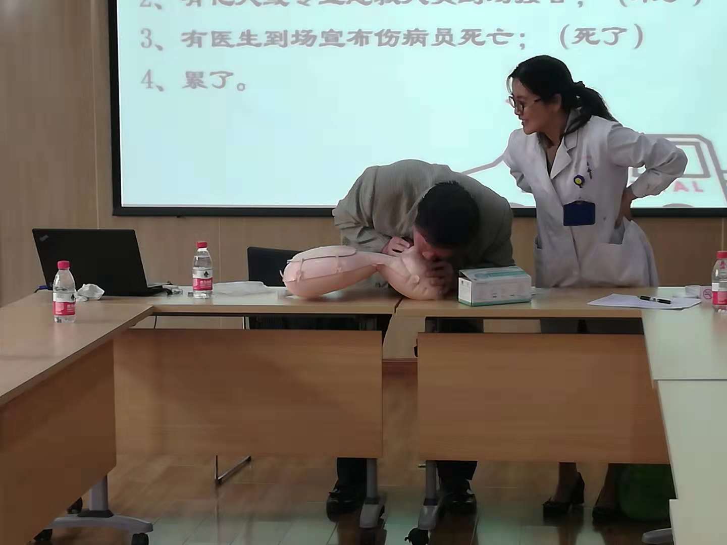 此次培训的主要内容为心肺复苏和包扎,王医生详细讲解了心肺复苏紧急救护的基本原则、方法与步骤,并进行了现场操作示范,为了增强实效性,王医生引导学员进行现场救护的模拟演练,提高大家的实操能力。对于日常生活中比较常见的外伤出血,王医生也通过几种类型的包扎为大家讲解,居民们纷纷表示受益匪浅。