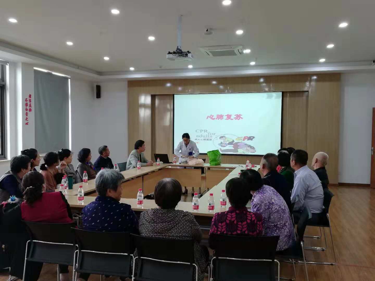 为迎接首届中国国际进口博览会的召开,营造良好、稳定、安全的社会环境,提高群众的急救意识,增强各类人群在突发情况下的自救、互救能力,10月30日我镇同乐社区红十字组织特邀社区卫生服务中心王萍丽医生为18名居民开展应急救护培训。