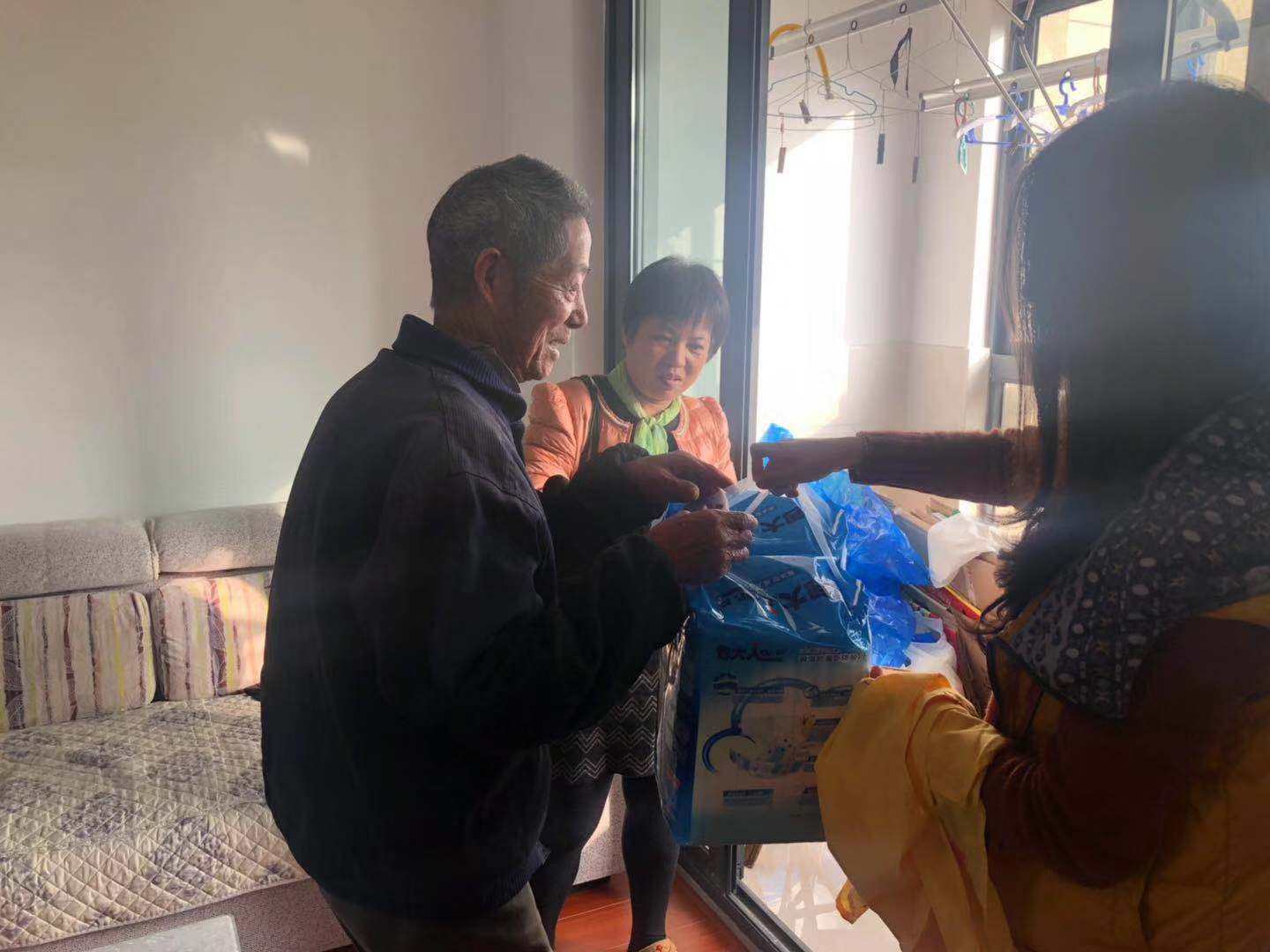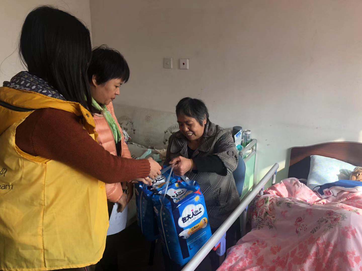 通过走访,我们了解到受助者家庭反映的情况,有一部分不方便去领取护理用品,希望能够上门配送,并且能够时常和他们谈谈心,聊聊天。