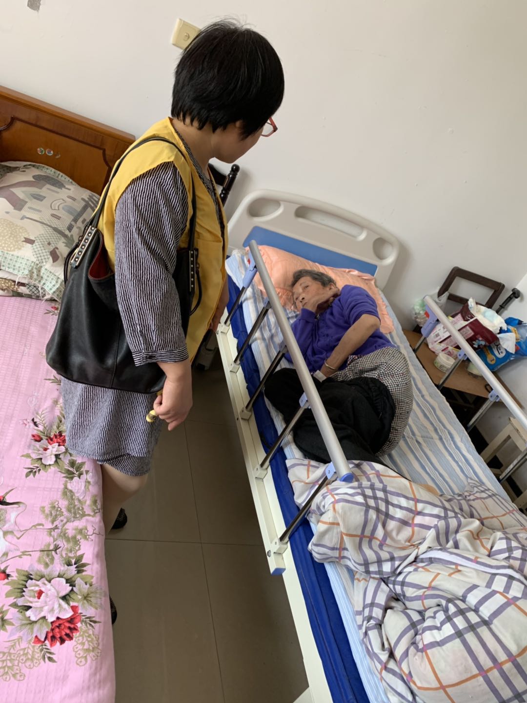 走访慰问过程中,镇红会干部带着慰问品挨家挨户前去慰问,每到一户家庭,都与老人亲切交谈、嘘寒问暖,详细了解他们的家庭生活状况和存在的具体困难。同时询问监护人每月尿布发放情况,大家纷纷表示居委干部每月尿布发放及时,态度友好,非常感谢红十字会开展的关爱失智失能老人项目。