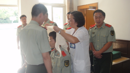 活动中,志愿者医生为部队官兵提供量血压、听心肺、医疗咨询等服务。杨老师对部队官兵进行急救知识的培训,内容涵盖了止血、包扎、骨折固定等。官兵们踊跃参与,认真操作,掌握了急救方面的技能。部队的指导员感谢镇红十字会带来的节日慰问,全体官兵会更好地履行保家卫国的使命,为构建和谐社会做出应有的贡献。