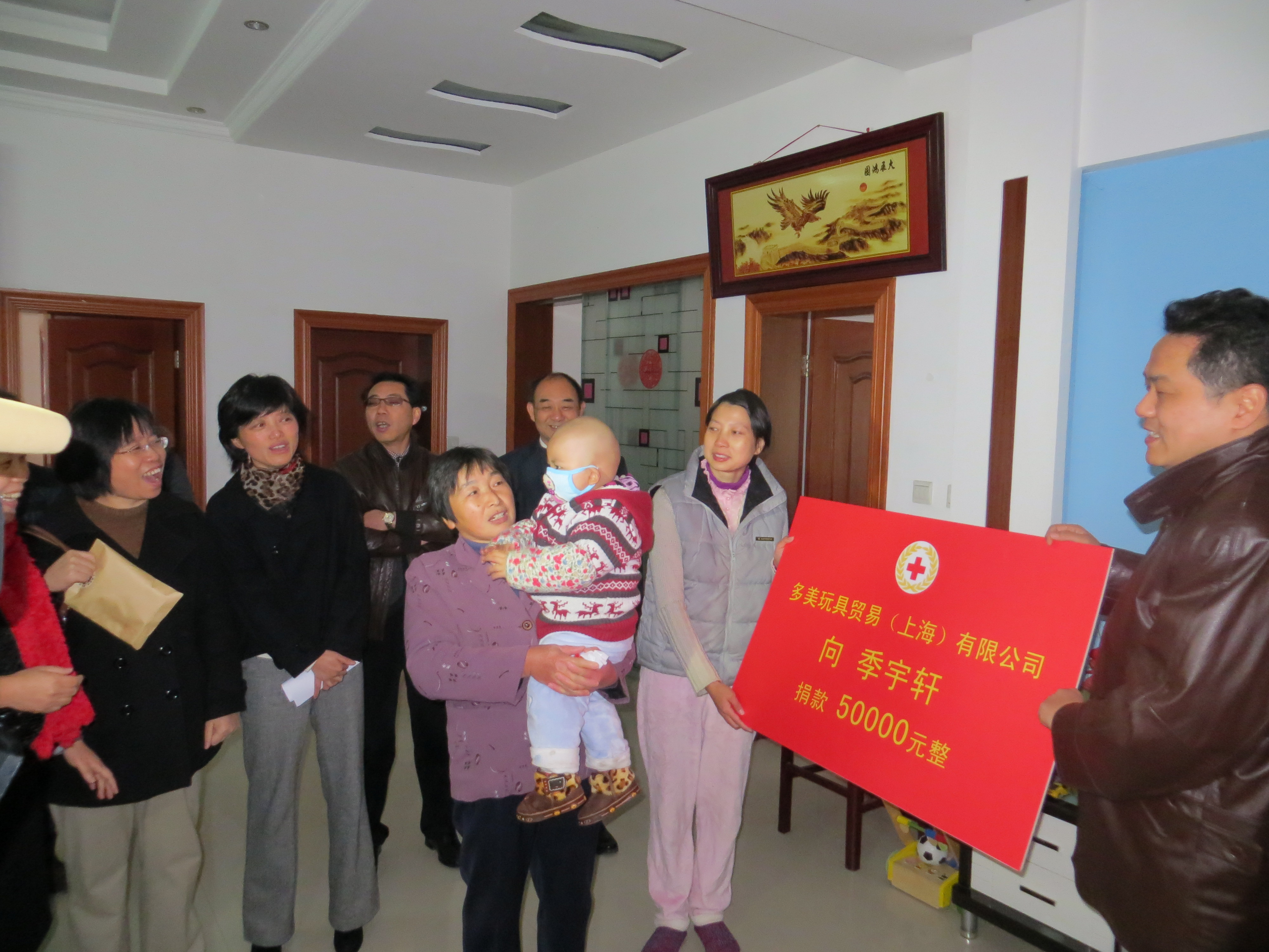 12月17日上午,市红十字会赈济救护部部长滕桂香、区红十字会常务副会长程瑜、新桥镇党委副书记吕颖群和多美玩具贸易(上海)有限公司总经理张晟等一行前往家住华兴小区的季宇轩小朋友家中慰问。