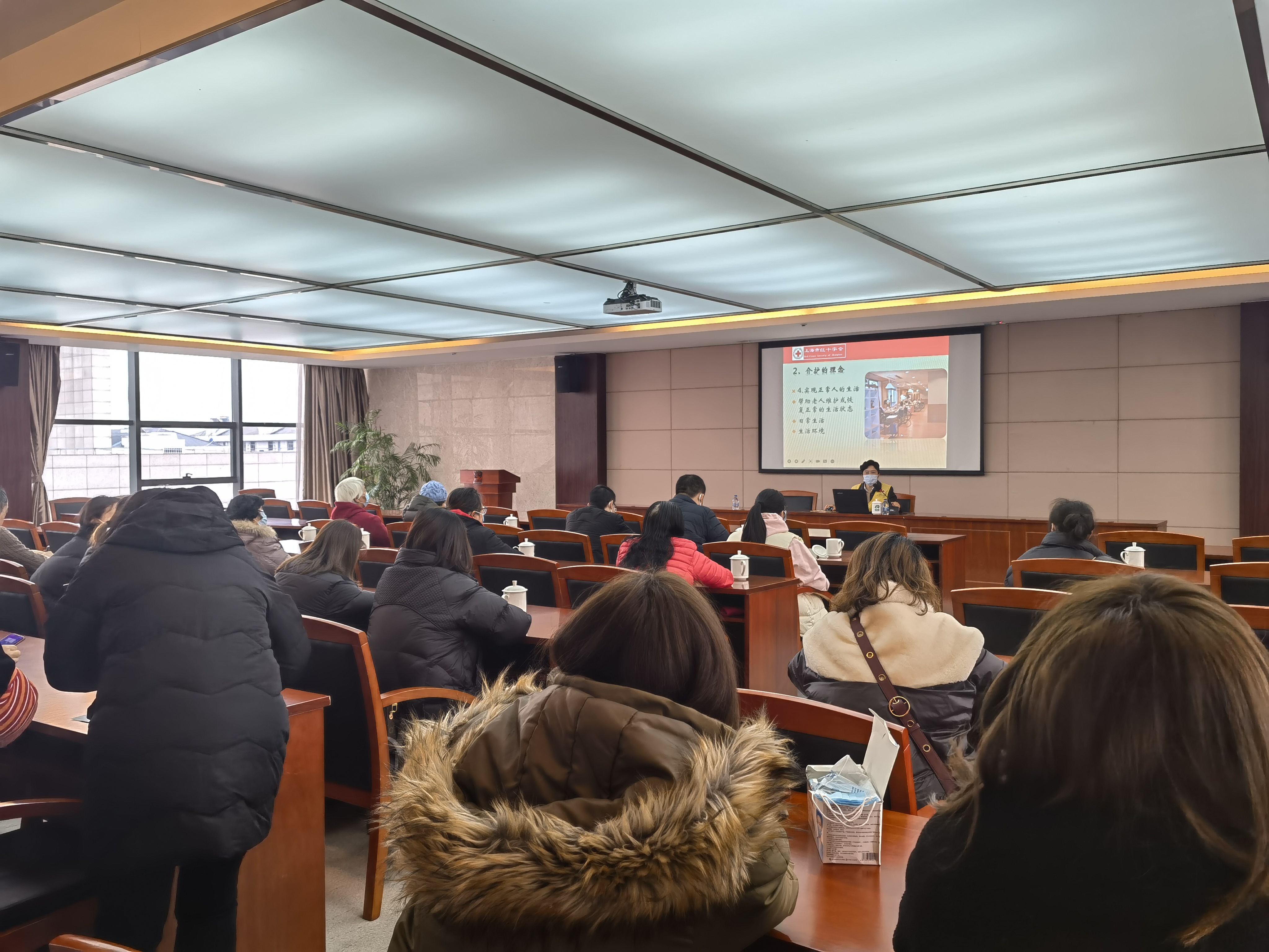 2月22日,洞泾镇红十字会邀请老年介护培训师资许文彩为辖区重度失智困难老人的家属和红十字志愿者们进行老年介护知识培训。本次培训共有30余人参加。