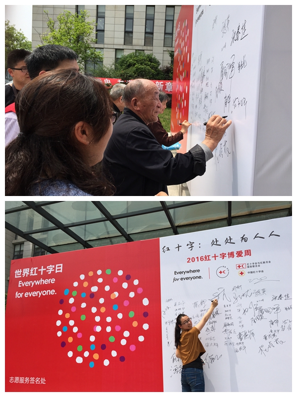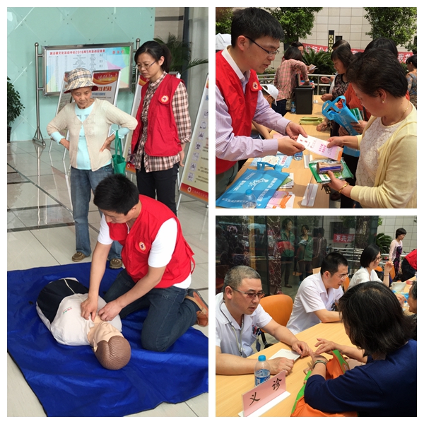5月8日,是第69个世界红十字日,为加强红十字运动基本知识传播,凝聚更多社会力量关心支持红十字事业。5月6日,洞泾镇红十字会联合镇团委、妇联、计生、社区卫生服务中心等部门在社区文化活动中心广场共同开展纪念日宣传活动。为加强宣传效果,增加居民们参与红十字活动的热情,活动现场特设了志愿者签名墙,共计有100多名同志在上面留下了签名。同时,镇红会安排了医院专家为民义诊咨询、测量血压等;现场还摆放了心肺复苏操作模拟人,由张春连医生现场讲解演练,让居民学习体验救护技能。