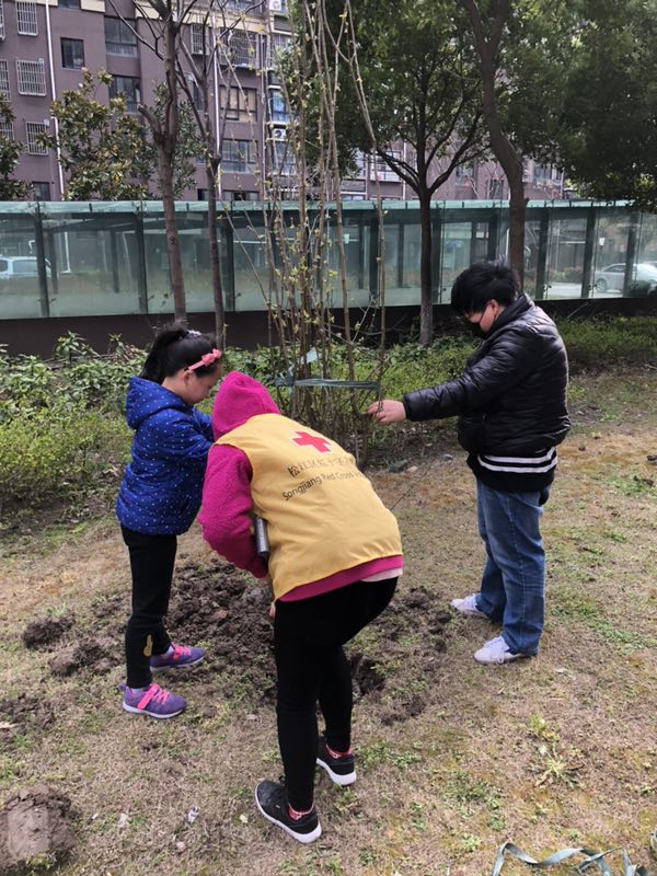 松江区洞泾镇红十字会志愿者开展义务植树活动