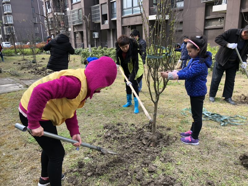 3月17日上午,洞泾镇红十字会总站工作人员及红十字志愿者共计20余人在平阳居委会润景苑小区开展义务植树活动。