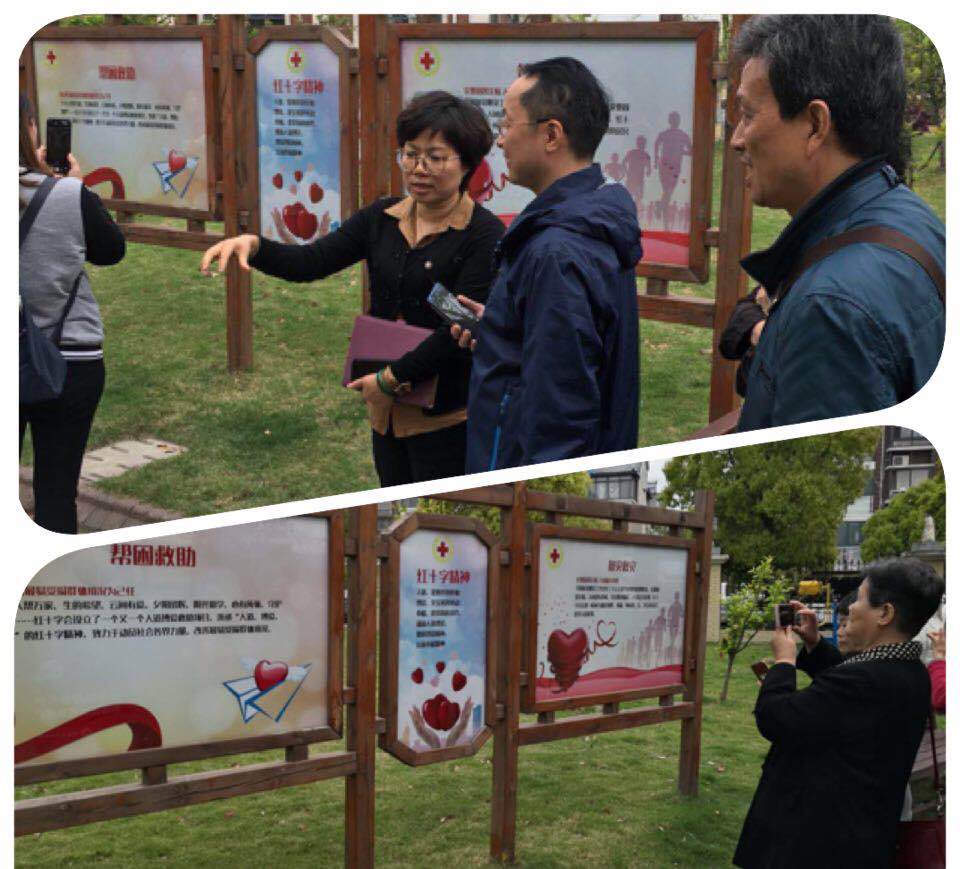 一行人最先来到砖桥红十字主题公园,公园中融入了红十字文化、急救知识等丰富多样的内容,让静安区基层红会干部印象深刻。