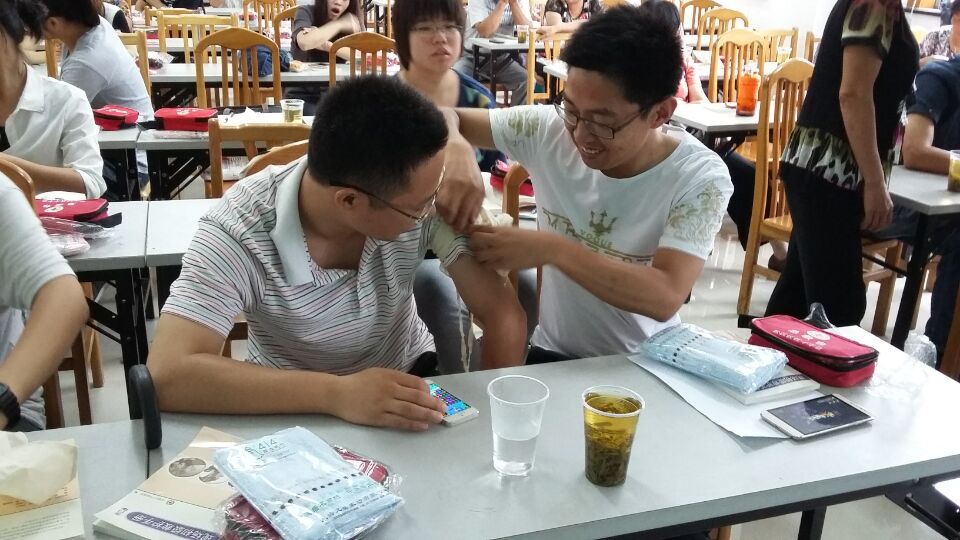 此次培训邀请救护培训师资、镇社区卫生服务中心的郭爱军老师主讲.课上,她为大家一一讲解了救护新概念、心肺复苏、气道异物梗塞、创伤救护、逃生避险技能等五项知识。大家学习了现代救护的概念,心肺复苏的操作方法和伤口的简易包扎处理,并掌握了日常生活中突发疾病的救护和逃生避险的要领。在本次培训过程中,年轻的大学生们积极配合,认真练习各项技能操作,他们好学、接受能力强、培训效果好。