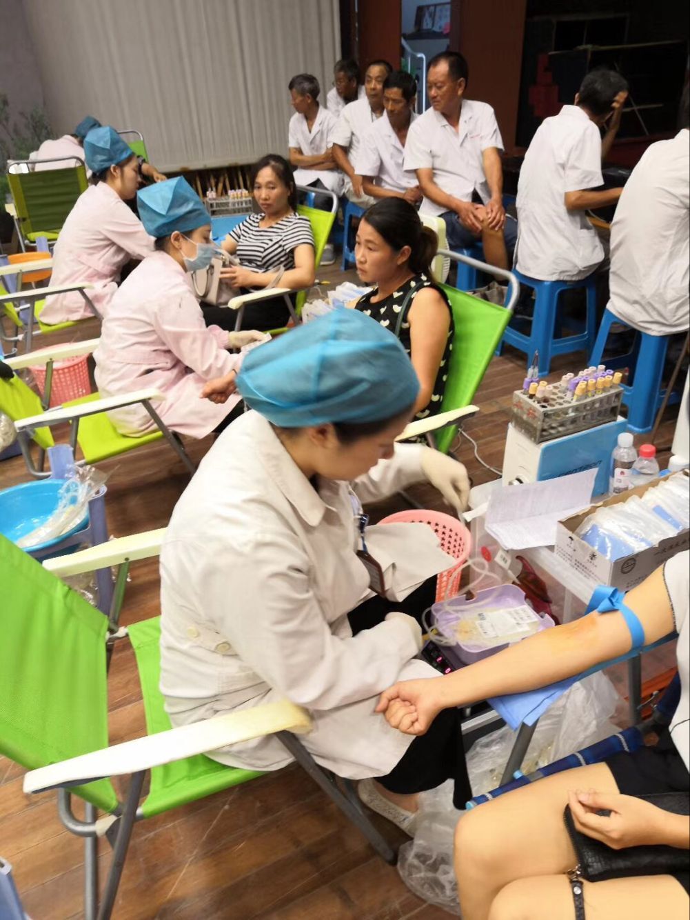 上午8点30分,红十字工作者、志愿者及其他所有工作人员早已到位,各项准备工作及安保措施就绪,献血活动正式启动。尽管天气炎热,但并没有阻挡大家献血的脚步,踊跃献血的人在现场排起了长队。本场8个行政村及镇投资公司分别安排专人负责带队,分设登记引导点,协助献血者领取献血等候号、填写表格信息、测量血压、血液初筛,直至完成正式采血等整个流程……红十字志愿者在旁耐心指导,活动现场井然有序,在一片爱心笼罩的氛围中,我镇第一场献血活动圆满结束。