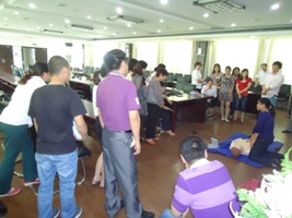 9月18日,叶榭镇红十字会在镇投资公司举办一期现场初级急救普及培训班,由于公司工作比较繁忙,镇红十字会通过与公司领导协商,利用中午午休时间,开展职工救护培训,由红十字救护师资龚卫老师授课。