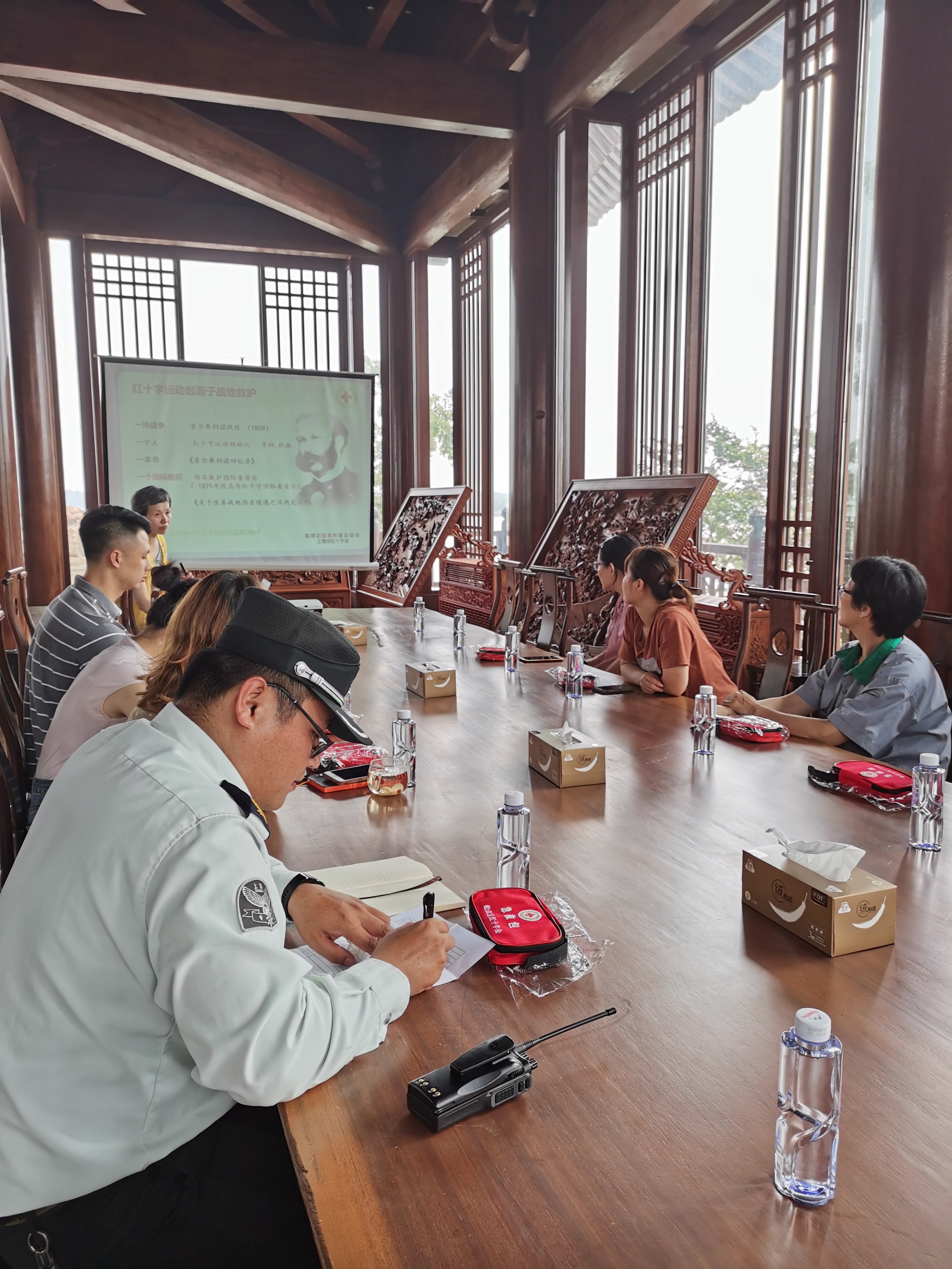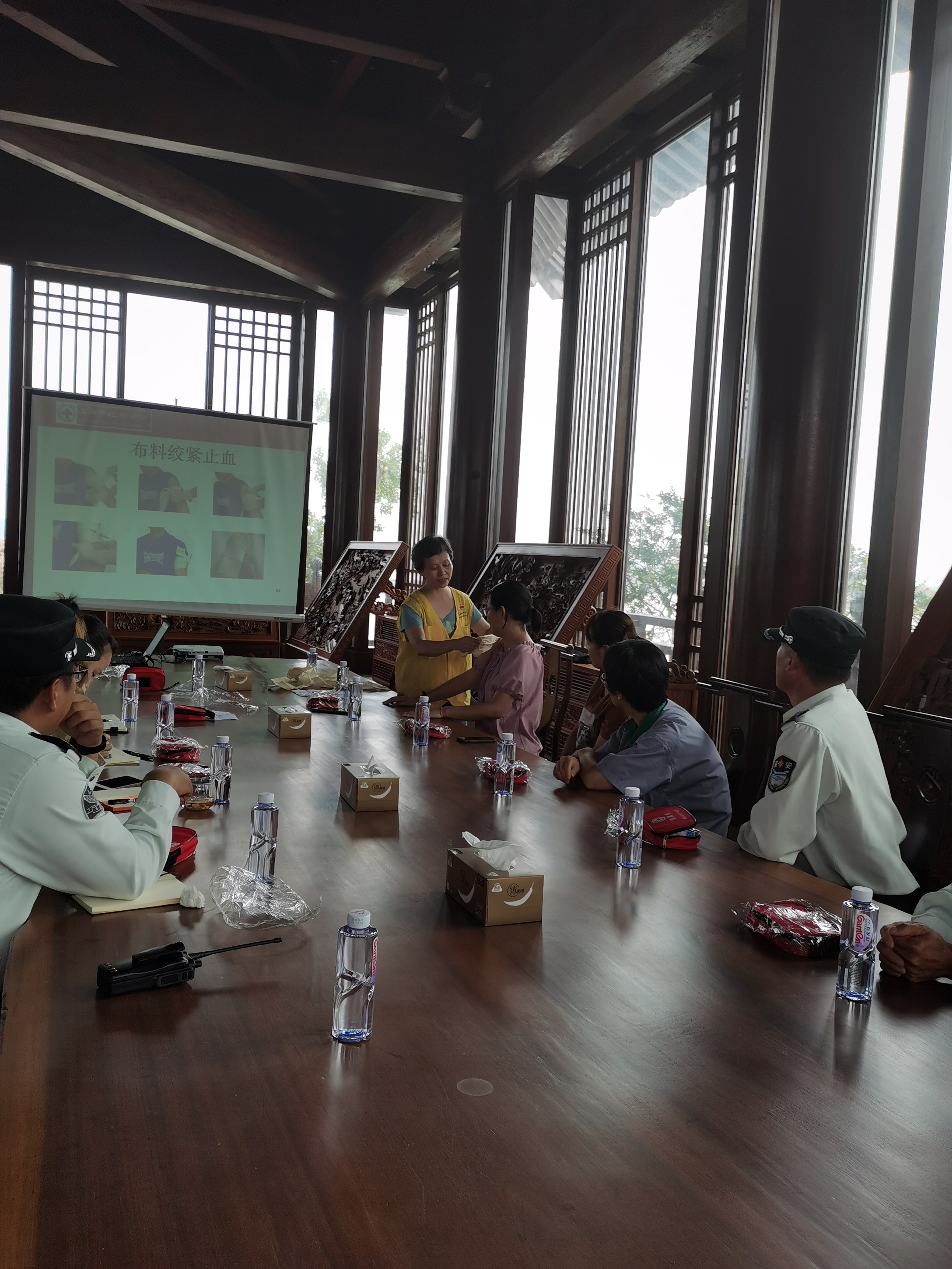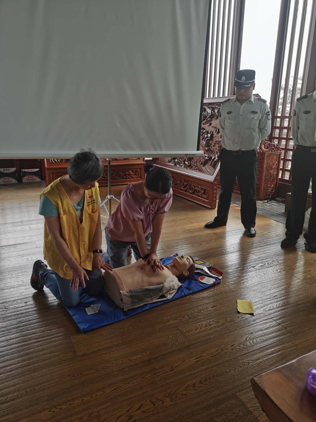 近期浦江之首景区游客数量日益增多,面对石湖荡镇浦江之首景区日益增加的游客数量,为进一步保障进园人员的生命安全,加强突发事件应急处置能力,石湖荡镇红十字会组织文旅公司全体人员在浦江之首开展急救培训。